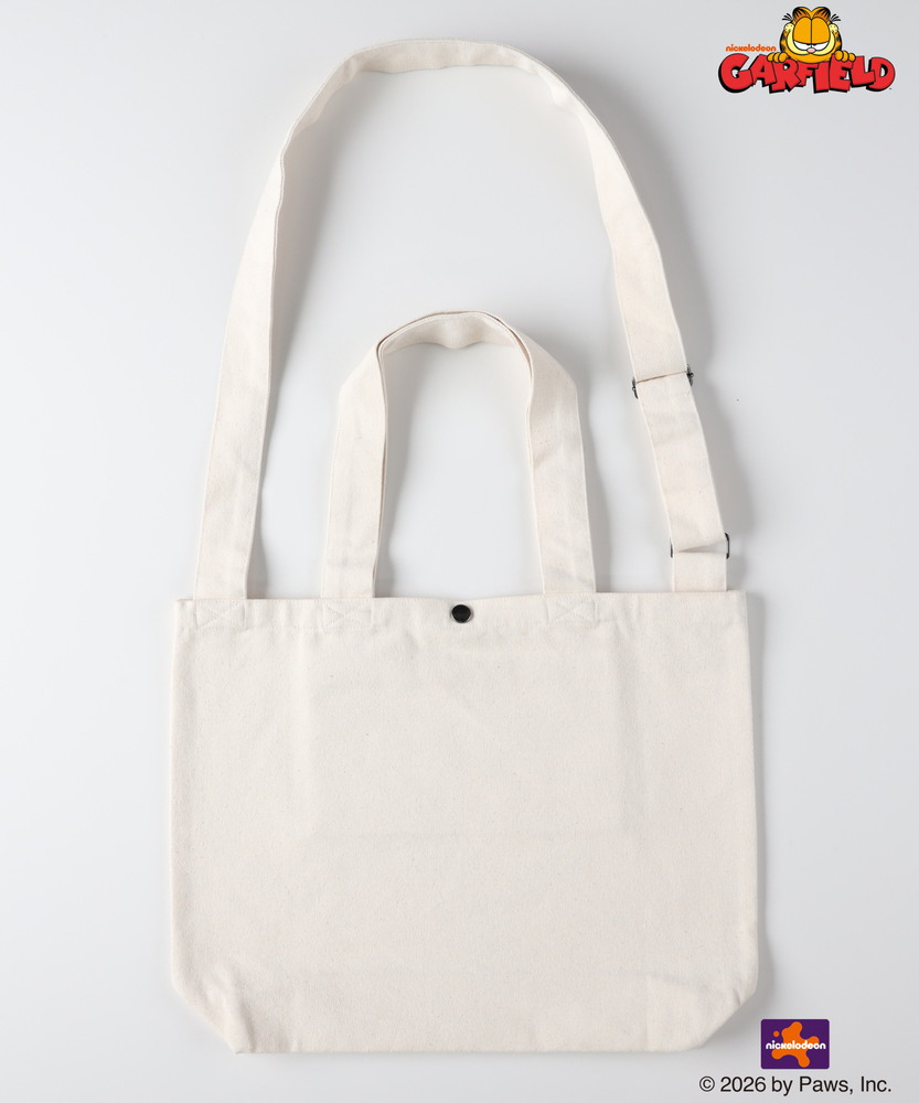 【仕様】「ガーフィールドのイラストがあしらわれたトートバッグ。ショルダーストラップ付きで、スタイルを変えて楽しむことができます。【素材】耐久性がありながらも軽やかな素材を使用しています。マルチカラーのプリントが映えるこのバッグは、普段使いだけでなく、ちょっとしたお出かけにも最適です。【着こなしポイント】カジュアルなスタイルに合わせてリラックスした休日スタイルを演出。ショルダーストラップを使って、サブバッグとしても活躍します。