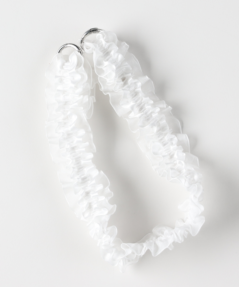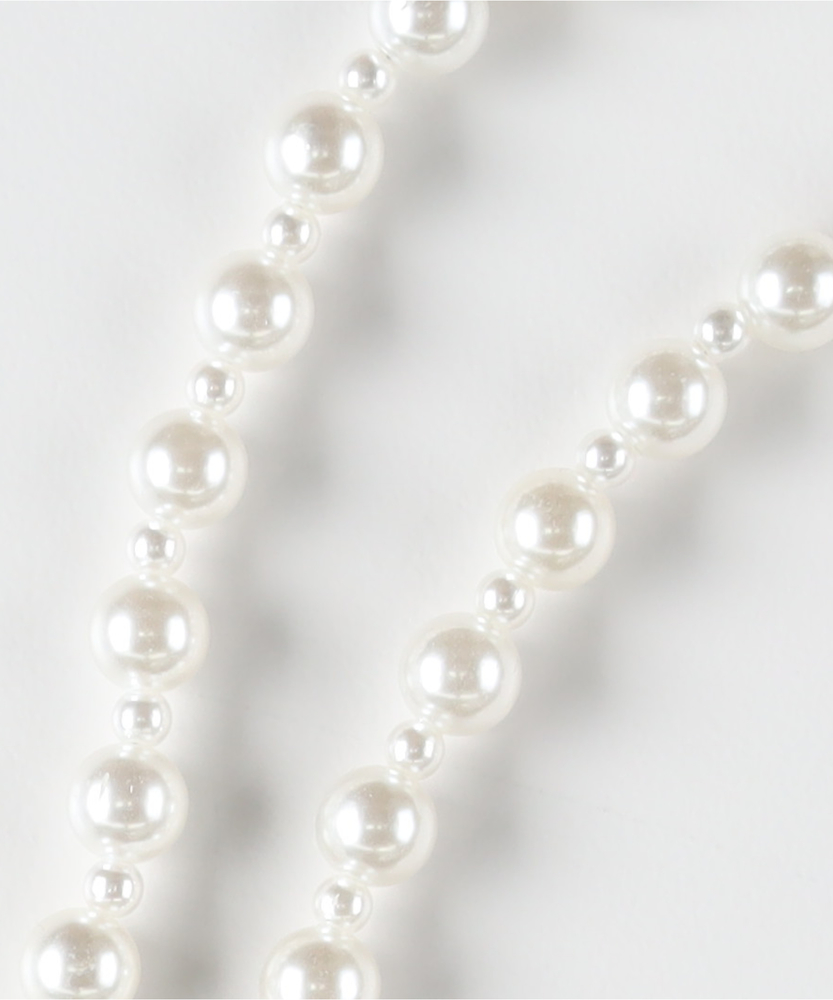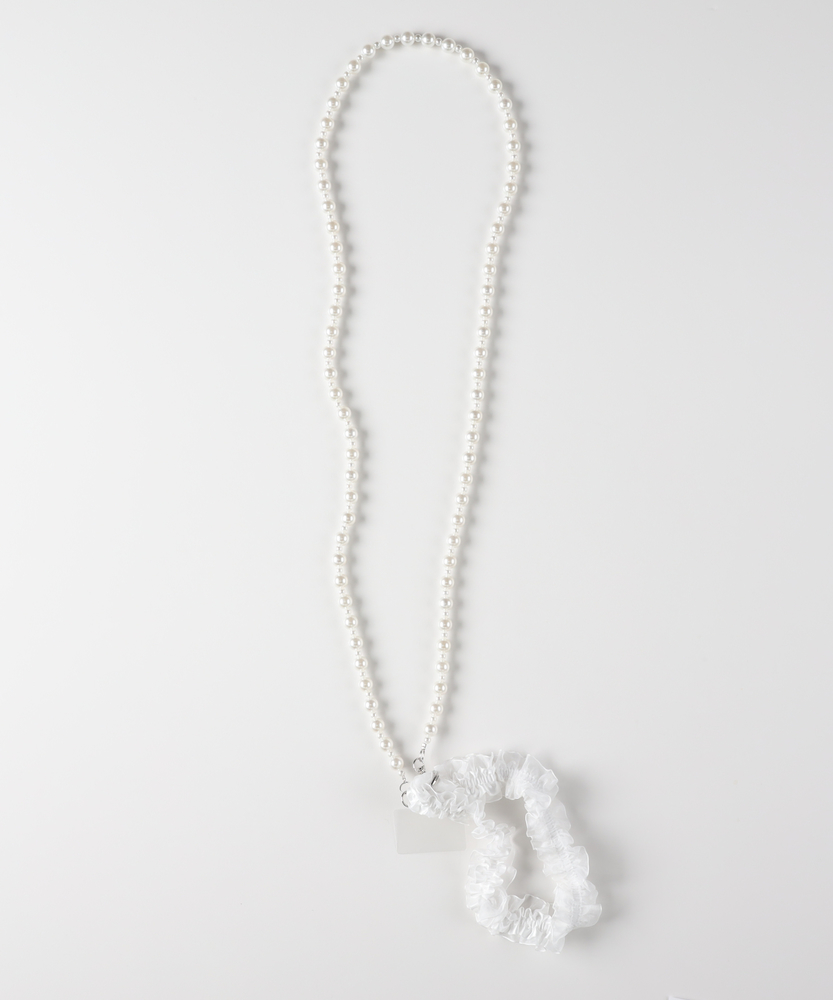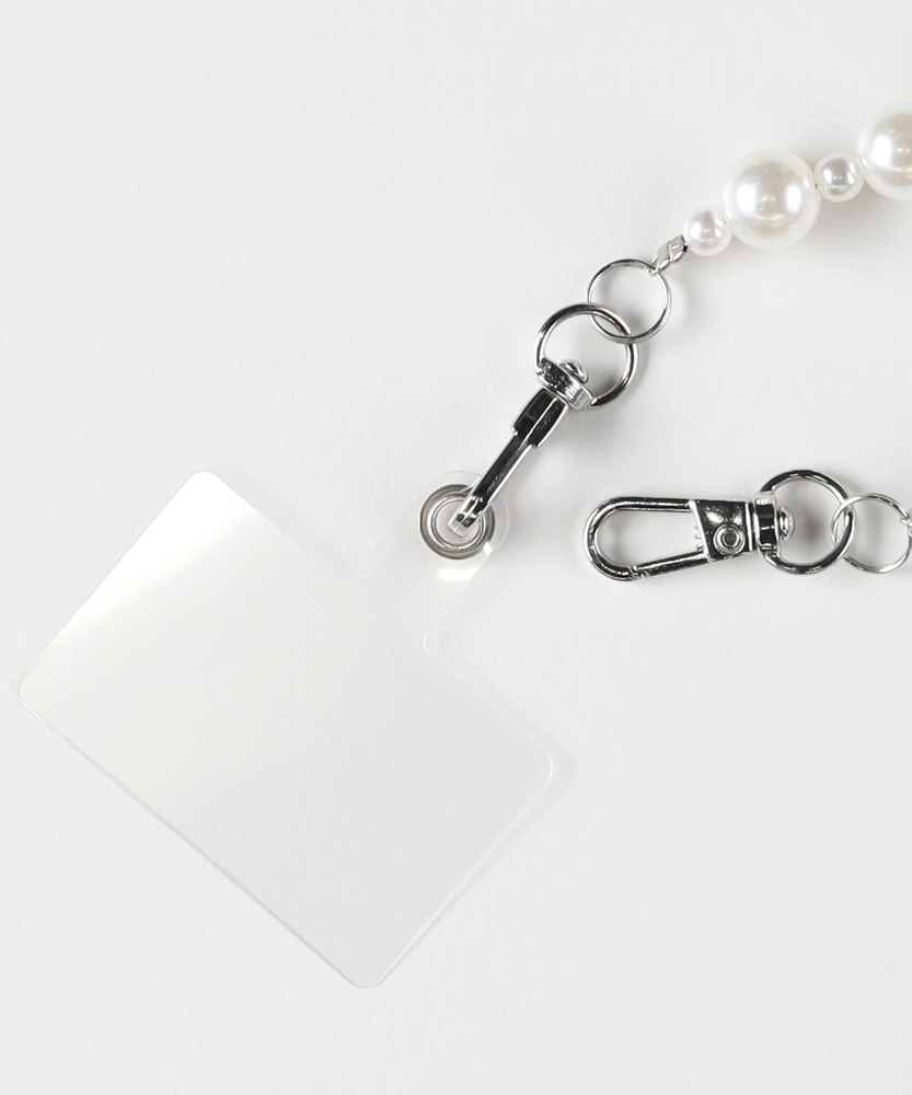 「チェーン」と「フリル」、2つの表情を操る。アクセサリー感覚で纏う、スマホショルダー。その日の気分で、手元の景色をカスタマイズ。■Point<・ケースに「挟むだけ」の簡単装着付属の透明シートをお手持ちのスマホケースに挟むだけでセット完了。お気に入りのケースのまま使い続けられます。・選べる「テイスト」クールで都会的な「シルバーボールチェーン×黒フリル」。上品でフェミニンな「パール調ビーズ×白フリル」。普段のスタイルに合わせて選べる、対照的な2タイプをご用意しました。・「手ぶら」で過ごす身軽さちょっとしたお出かけや、荷物の多い日もスマホを探す手間なし。落下や紛失のリスクも軽減し、スマートな所作を叶えます。【デザイン】シャープな輝きのチェーンと、エアリーなフリル。相反する要素を組み合わせることで、奥行きのあるデザインに仕上げました。金具には取り外しがスムーズなナスカンを採用し、忙しい朝もワンタッチでスタイリングが決まります。透明なホルダーシートは目立ちにくく、クリアケースのデザインを邪魔しません。【素材】ロングストラップは、程よい重量感と光沢があり、高見えする質感にこだわりました。ショートストラップは、肌当たりの優しいソフトな生地を使用。長時間身につけていてもストレスを感じにくい仕様です。【着こなしポイント】シンプルなTシャツやニットには、2本重ね付けでネックレス代わりのアクセントに。結婚式の二次会やパーティなど、ドレスアップした日はパールタイプを合わせて上品に。モードな装いにはシルバーチェーンを選び、フリルを外してクールに決めるのもおすすめです。