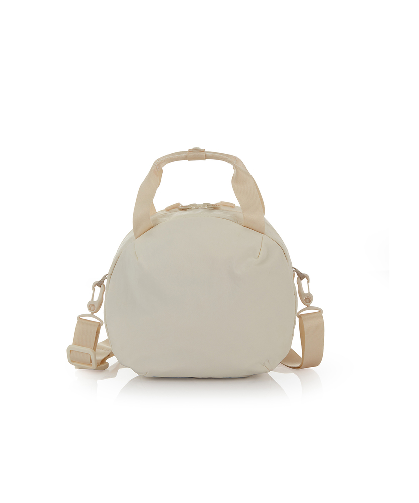 【仕様】丸みを帯びたフォルムが可愛らしさを演出し、他のバッグとは一線を画す存在感があります。肩掛けや斜め掛けができるショルダーストラップは、使い勝手が良く、持ち運びが自由自在です。前面にはシンプルなロゴがあしらわれ、さりげないアクセントとなっています。【機能性】・手提げにもできる持ち手付き。・丈夫なYKKジッパーを使用したメインコンパートメント。・つかみやすい専用設計のジッパープル。・長さ調節可能なショルダーストラップは取り外し可能。・ジッパー付きフロントポケット。・裏地を貼って補強されたボトム部。・便利な内部のスナップ式オープンポケットはキーフォブ付き。・ポケットの数:2(外側1/内側1)。【素材】軽量で丈夫なナイロン素材を使用しており、日常使いに最適です。耐久性が高く、長時間の使用でも快適さをキープ。雨や汚れにも強く、お手入れも簡単ですので、アクティブなライフスタイルにピッタリです。【スタイリング】カジュアルなデイリースタイルにはもちろん、シンプルなコーディネートのアクセントにもなります。デニムやリネンはもちろん、エレガントなワンピースとも相性が良いので、幅広いスタイリングに活用できます。4Lの容量で、ちょっとした外出も安心してこなせます。※こちらの商品はEC、一部店舗での限定展開となります。