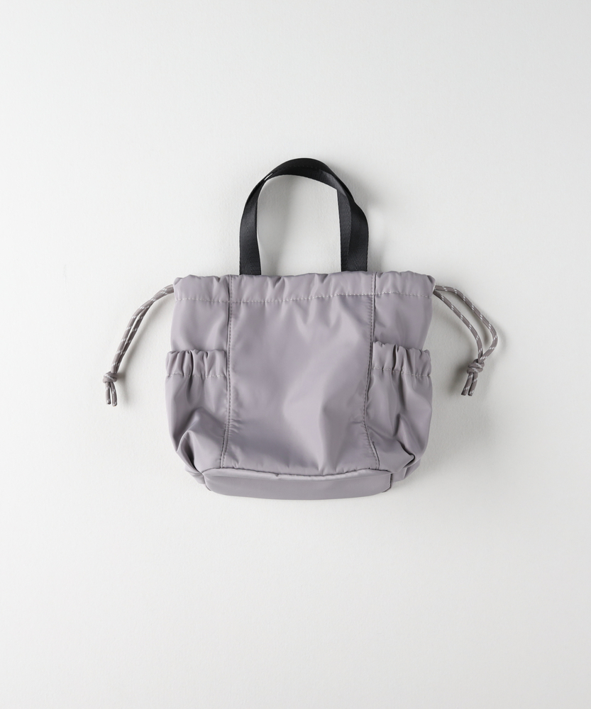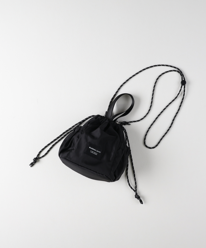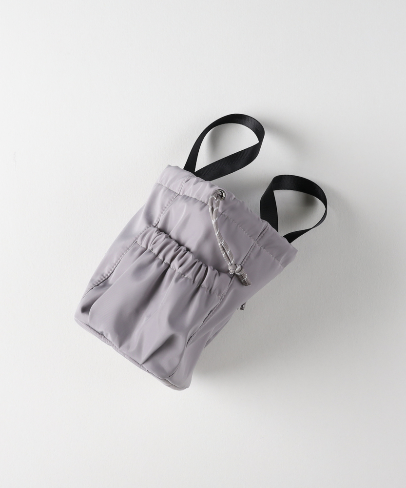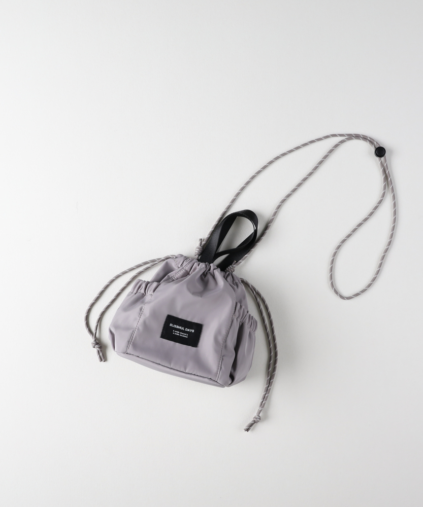 【仕様】きれいなフォルムを誇るミニ巾着のデザインは、カジュアルさと洗練された印象を両立。ショルダーストラップとハンドルが付いた2WAY仕様で、シーンに応じて持ち方を変えられます。シンプルながらもアイキャッチなラベルデザインが、スタイルに独自のエッセンスを添えます。【素材】 軽量で耐久性のあるポリエステル素材を使用し、日常使いに最適。微光沢感が、高感度な印象を演出。さらりとした手触りが心地よく、使い込むほどに愛着が増すアイテムです。機能性も考慮されており、必要なものをしっかり収納できます。 【スタイリング】 シンプルなTシャツとデニムのコーディネートにプラスすることで、都会的な印象に。さらりとしたワンピースとの相性も抜群で、デイリーユースはもちろんお出かけにもぴったりです。色味を活かしつつ、モノトーンのスタイルに合わせることで、スタイリッシュさを加速させる一品です。