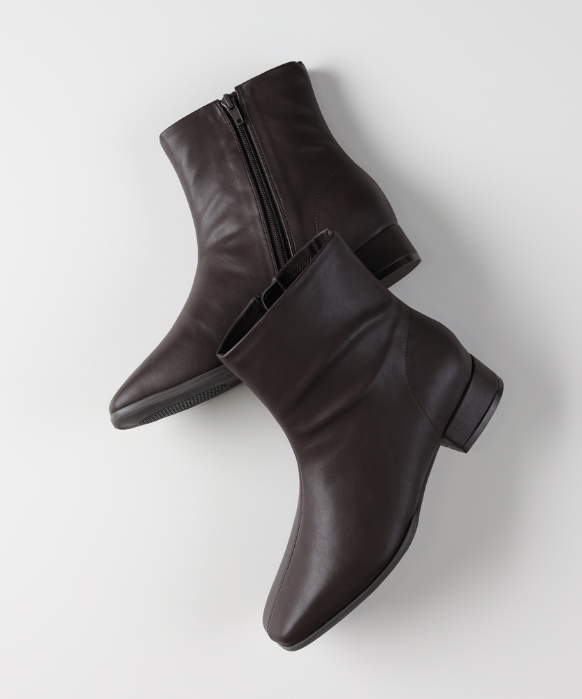 【仕様】シンプルで洗練されたフォルムが特徴のローヒールブーツ。シャープなトゥと流れるようなラインが、足元をエレガントに演出。ジッパー付きのデザインにより、着脱が簡単でありながら、ストリートからオフィスまで幅広いシーンで活躍します。【素材】 やわらかな素材を使用することで、デイリーユースに最適な耐久性と快適なフィット感を実現。微光沢のある表面が、都会的で洗練された印象を与え、カジュアルなスタイルにも上品さをプラスします。 【スタイリング】 カジュアルなパンツやスカートとの相性が良く、シンプルなTシャツやニットと合わせることで、スタイリッシュなカジュアルコーデが完成。季節問わず使えるアイテムとして、デイリールックにエッセンスを加える一足です。
