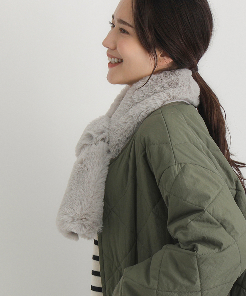 【仕様】贅沢なフェイクファーを使ったこのティペットは、冬のコーディネートに華やかさを加えます。柔らかく、心地よい肌触りが特徴のこのアイテムは、肩にかけるだけで暖かさとスタイルを同時に提供。リボンのように結んだデザインが、女性らしいアクセントをもたらします。普段使いはもちろん、特別な日のおしゃれアイテムとしても活躍すること間違いなし。シンプルなコートやジャケットに合わせることで、上品な印象を与え、カジュアルなスタイルも一気に格上げ。手軽に巻くだけで、温かさとファッション性が融合したこのティペットは、寒い季節のおしゃれに欠かせないアイテムです。色のバリエーションも豊富で、あなたのスタイルにぴったりな一枚が見つかることでしょう。