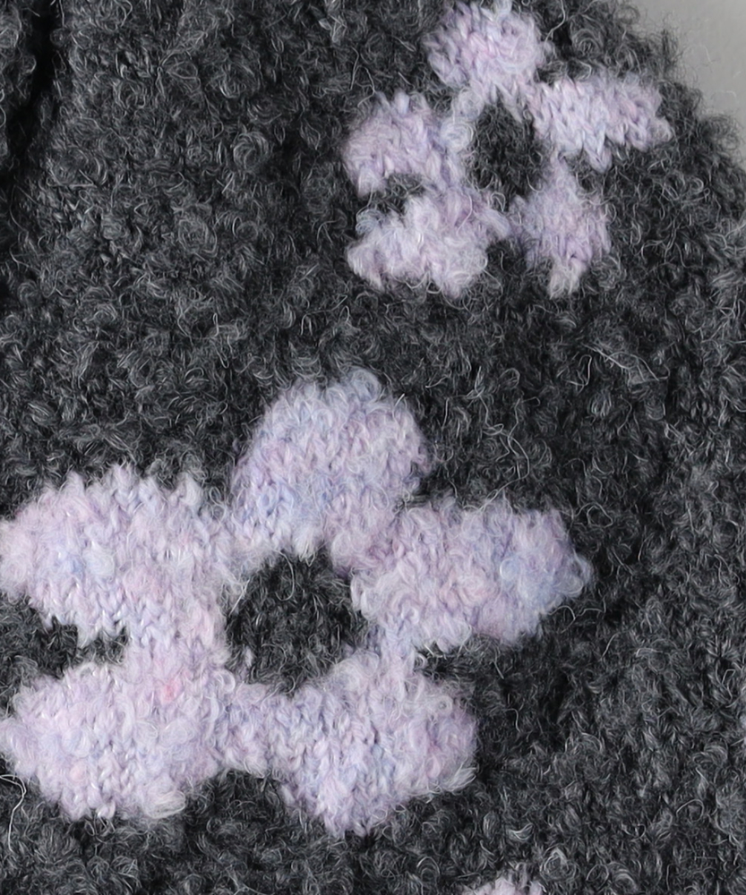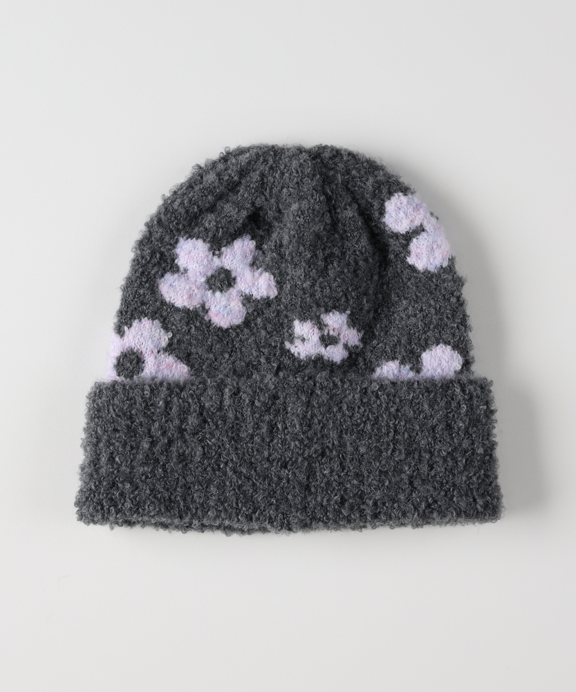 【仕様】程よいゆとりのあるシルエットに深めの折り返しカフを採用し、安定した被り心地を実現。大ぶりのフラワーモチーフがモダンなアクセントとなり、シンプルな装いにさりげない遊び心を添えます。季節のスタイリングに軽やかな表情を加える一品です。【素材】 ふわりとしたループ感のあるニットは空気を含みやすく高い保温性を発揮し、柔らかな肌当たりで長時間の着用も快適。程よい伸縮性でフィット感を保ち、折り返しの形が美しく出る構造が特徴です。 【スタイリング】 クリーンなコートやジャケットと合わせて都会的にまとめるのがおすすめ。ニットやスウェットとの素材MIXで抜け感を作り、スカートやワイドパンツと合わせて女性らしさも引き出せます。カジュアルからきれいめまで幅広く活躍します。
