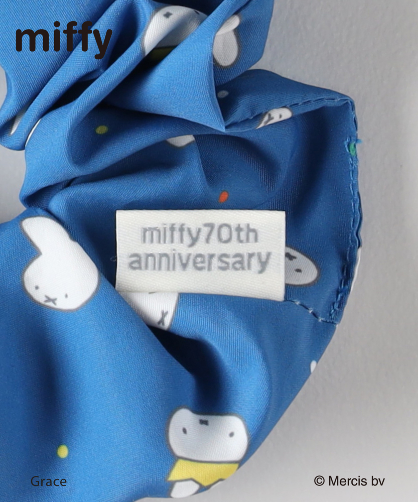 ミッフィー70周年限定デザイン「ミッフィー」がデザインされたシュシュが新登場!!さまざまな年代のミッフィーがプリントされたカラフルな色合いがポイントのシュシュ。もこもこサガラ刺繍のミッフィーのお顔がアップリケされています。シンプルなヘアスタイルに取り入れるだけでアクセントに。