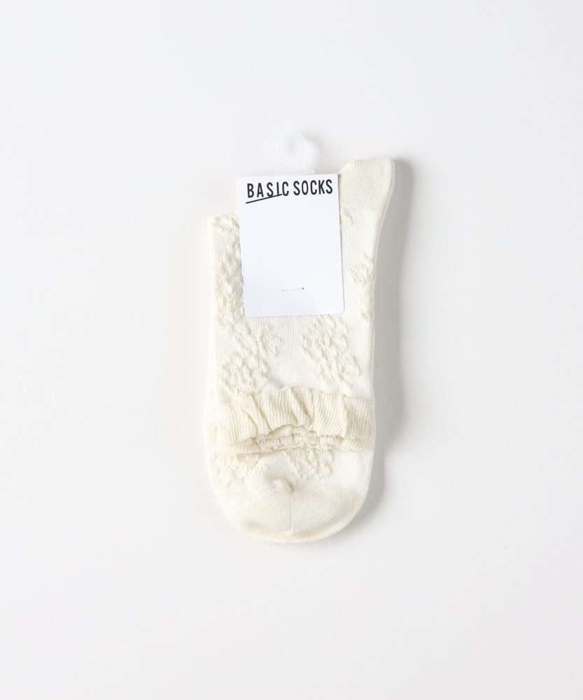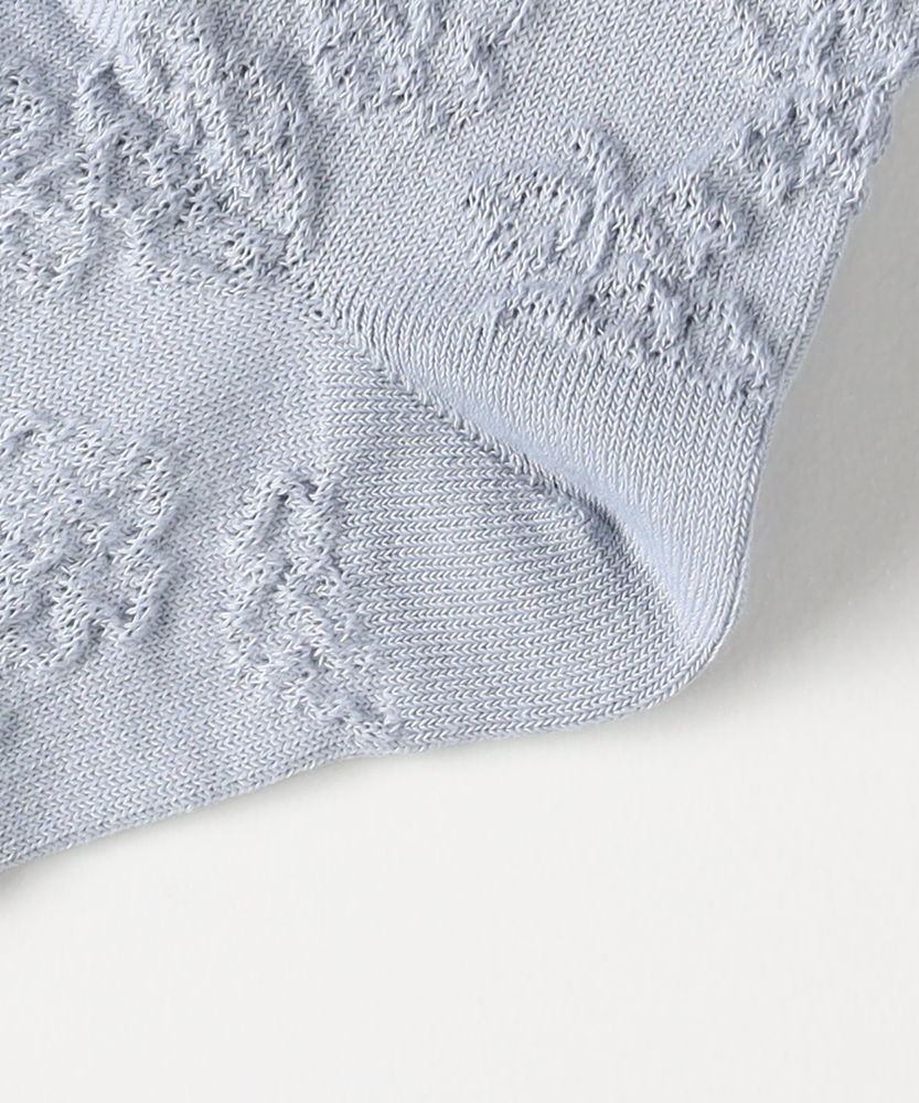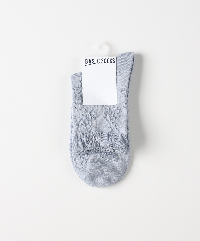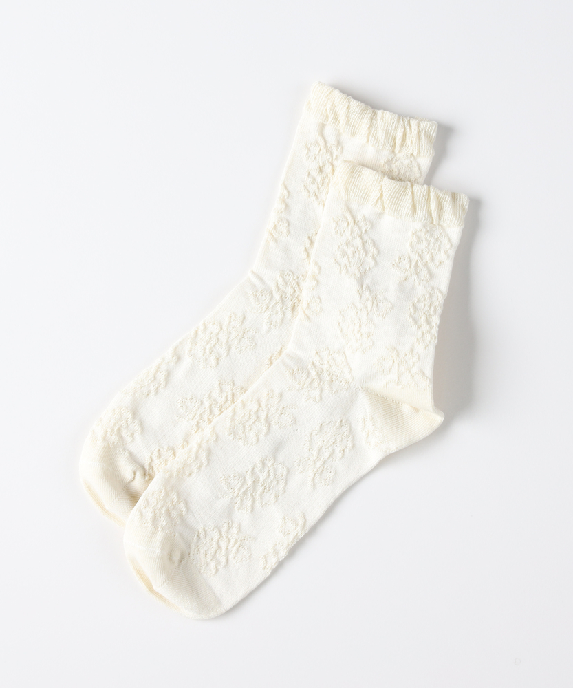 足元にさりげない華やかさを添えて。立体的な花柄が大人可愛いジャガードソックス。いつものコーデにプラスするだけで旬な足元へ。■Point・立体感のある花柄ジャガードぽこぽことした編み地が魅力。足元にさりげない表情をプラス。無地感覚で合わせやすいデザイン。・締め付け感を抑えた履き口ゆったりとした優しいフィット感。長時間の着用でも快適な履き心地。ほんのり波打つデザインもポイント。・デイリーに使いやすい丈感スニーカーやパンプスとも好相性。パンツの裾からチラ見せしても◎。毎日のコーデに活躍する絶妙な長さ。・柔らかな肌触りでノンストレス足全体を優しく包み込む心地よさ。季節を問わず履きやすい風合い。お出かけやお家でのリラックスに。・大人に似合う上品なカラー甘さを抑えた落ち着きのある色合い。普段のコーデに馴染むトーンを厳選。足元からさりげなくセンスを演出。・コーデを格上げするアクセントシンプルな装いのワンポイントに。さりげないこだわりが光る一足。何足あっても嬉しい頼れるアイテム。【仕様】立体的に編み込まれた花柄のジャガード模様が、大人の足元にさりげない華やかさを添えるソックスです。履き口は締め付け感を軽減したゆったりとした仕様で、フリルのような波打つデザインがほんのりフェミニンな印象を与えます。スニーカーからローファーまで、どんなシューズともバランスを取りやすい絶妙な丈感も魅力です。【素材】足全体をふんわりと優しく包み込む、柔らかな肌触りが特徴です。立体感のあるジャガード編みが、見た目の可愛らしさだけでなく、ほどよいフィット感と心地よさを実現。季節を問わずデイリーユースしやすい厚みで、お出かけの日はもちろん、お家でのリラックスタイムにも寄り添ってくれる快適な履き心地です。【スタイリング】デニムやチノパンからチラリと覗かせれば、カジュアルな中に女性らしいエッセンスをプラスできます。バレエシューズやローファーと合わせて、クラシカルな足元を演出するのもおすすめ。甘すぎない上品な柄行きなので、無地のボトムスだけでなく、柄物のワンピースなどと合わせてもすっきりとまとまります。
