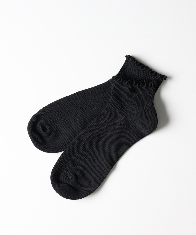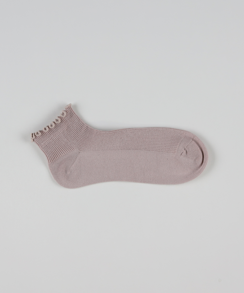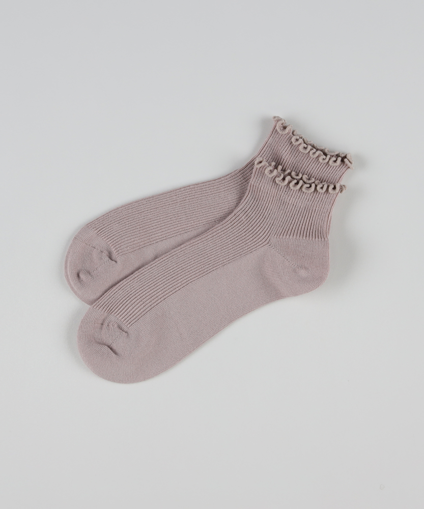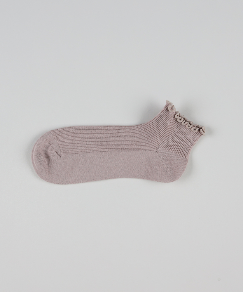 大人の足元に、さりげない可愛げをプラス。履き口のフリルが覗く、絶妙なバランス感。いつもの靴に合わせるだけで旬の表情に。■Point・足元を彩る、波打つメロウディテール履き口に施されたフリルがポイント。控えめな甘さで大人も取り入れやすい。スニーカーから少し覗かせるのがおすすめ。・すっきり見えを叶える細リブ編み縦のラインを強調するリブデザイン。足首周りをすっきりと見せてくれます。フィット感が高く、心地よい履き心地。・どんな靴とも相性の良いショート丈長すぎず短すぎない絶妙な丈感。パンプスやローファーとも好相性。ボトムスの裾からチラリと見せて。・大人の装いに馴染むニュアンスカラー肌馴染みが良く、上品な印象を与えます。トレンド感のある落ち着いた色合い。いつものコーデに自然に溶け込みます。・締め付けすぎない、優しいフィット感履き口は柔らかく、足首に優しく沿います。長時間のお出かけでも快適な着用感。日常使いに嬉しいストレスフリーな仕様。・コーデの幅を広げる頼れる名脇役靴下を変えるだけで印象がガラリと変化。足元からさりげない遊び心を演出できます。色違いで揃えたくなる使い勝手の良さ。【仕様】履き口に施された波打つようなフリルデザインが目を惹く、愛らしいアイテムです。細かなリブ編みが縦のラインを強調し、足首をすっきりとスマートに見せてくれます。装飾は控えめでありながら、足元に程よいアクセントをプラス。大人の女性が日常で気兼ねなく楽しめる、ほんのりとした甘さが魅力です。【素材】肌に優しくフィットする、柔らかな編み地を使用しています。伸縮性に優れたリブ仕様により、足全体を心地よく包み込みながらも、締め付け感のない快適な履き心地を実現しました。毎日でも身につけたくなるような、温かみのある優しい風合いが、リラックスしたい大人の日常にそっと寄り添います。【スタイリング】バレエシューズやパンプスに合わせて、フリルを際立たせたフェミニンな足元を演出するのがおすすめです。あえてスニーカーやローファーなどのマニッシュな靴と合わせることで、甘さを抑えた大人の抜け感スタイルが完成します。ボトムスの裾から落ち着いたカラーを覗かせ、こなれたレイヤードをお楽しみください。