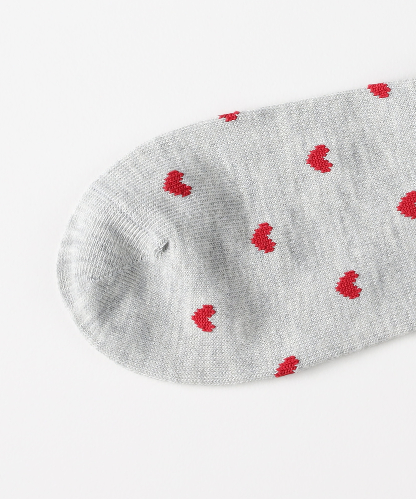足元から気分を上げる、大人の愛らしさ。さりげない総柄で、日常の足元にときめきを。スニーカーからチラリと覗く、絶妙なアクセント。■Point・大人が履きやすい小ぶりな柄甘くなりすぎないサイズ感。大人の女性の装いにマッチ。足元に程よい遊び心を。・日常使いしやすい万能な丈感使い勝手の良いクルー丈。パンツの裾からチラ見せも。足首周りをすっきり演出。・締め付けを抑えた優しい履き口程よいフィット感のリブ仕様。長時間の着用も快適に。ずり落ちにくい安心設計。・コーデに馴染むベースカラー合わせやすい落ち着いた色合い。柄物でも派手になりすぎない。手持ちの靴とも相性抜群。・足全体を包む心地よいフィット感優しく足に寄り添う履き心地。もたつきにくくすっきり。デイリーユースに最適です。・シーズンレスで使える生地感厚すぎず薄すぎない仕上がり。オールシーズン活躍します。幅広い靴に合わせやすい。【仕様】小さなモチーフを全体に散りばめた、遊び心あふれる総柄デザイン。甘くなりすぎない小ぶりなサイズ感で、大人の女性の日常にすっと馴染みます。ベーシックなクルー丈は、スニーカーやローファーなど合わせる靴を選ばず、ボトムスの裾から覗かせた時のバランスも絶妙です。履き口のリブが足首に優しくフィットします。【素材】日常使いにふさわしい、足に優しくフィットする柔らかな編み地を採用しています。厚すぎず薄すぎない程よい生地感で、季節を問わずオールシーズン快適にご着用いただけます。靴を履いた時にもたつきにくく、すっきりとした足元をキープ。毎日気兼ねなく履きたくなる、心地よい肌触りが魅力です。【スタイリング】カジュアルなデニムやチノパンの裾を少しロールアップして、柄をチラリと覗かせるスタイルがおすすめです。ローテクなスニーカーはもちろん、マニッシュなローファーやバレエシューズに合わせても、程よい抜け感を演出できます。シンプルなコーディネートの日に、足元でさりげない個性を楽しんでみてください。