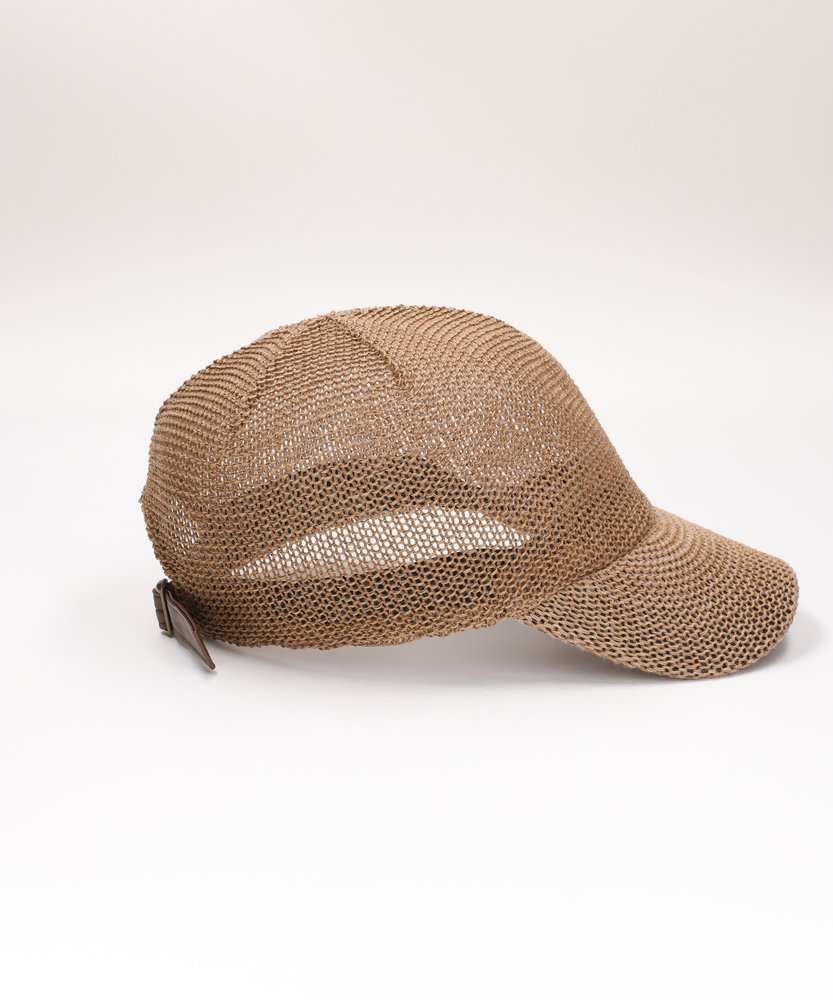 涼やかに被る、大人のためのサマーアイテム。風が抜けるペーパー素材で、日差し対策も快適に。いつもの装いに、季節感とこなれた抜け感をプラス。■Point・風が抜ける涼やかな編み地通気性に優れたペーパー素材。熱がこもりにくく快適な被り心地。春夏のお出かけに欠かせない。・きれいな丸みの立体シルエット頭の形に馴染むレギュラーフィット。すっきりとした美しいフォルム。被るだけでバランスよく決まる。・後ろ姿に品を添える合皮ベルトサイズ調整ができるアジャスター。合成皮革がさりげないアクセントに。カジュアルすぎない大人のデザイン。・幅広いスタイルにマッチデニムなどのカジュアルテイストに。ワンピースなどのフェミニンな装いにも。いつものコーデに自然に馴染む。・肌に馴染むニュアンスカラー大人の女性が使いやすい色展開。顔周りを優しく彩るトーン。色違いで揃えたくなる使いやすさ。・軽やかな被り心地ふんわりと軽いペーパーブレンド。長時間の着用でも負担が少ない。日常使いからレジャーまで活躍。【仕様】丸みを帯びたベーシックなシルエットで、頭の形にきれいにフィットするよう成形されたデザインです。ベルトで簡単にサイズ調整ができるため、自分の頭に合わせた快適なフィット感を得られます。【素材】ポリエステルと分類外繊維をブレンドした、軽やかで通気性の良い素材を使用しています。ざっくりとした編み地が涼しげで、汗ばむ季節でも熱がこもりにくく快適です。異素材のベルトが、全体を引き締める上質なアクセントになっています。【スタイリング】Tシャツにデニムを合わせたラフなカジュアルスタイルはもちろん、ふんわりとしたワンピースやロングスカートのフェミニンな装いの外しアイテムとしても大活躍します。被るだけでシーズンムードが高まり、力の抜けた大人のこなれ感のあるコーディネートが完成します。