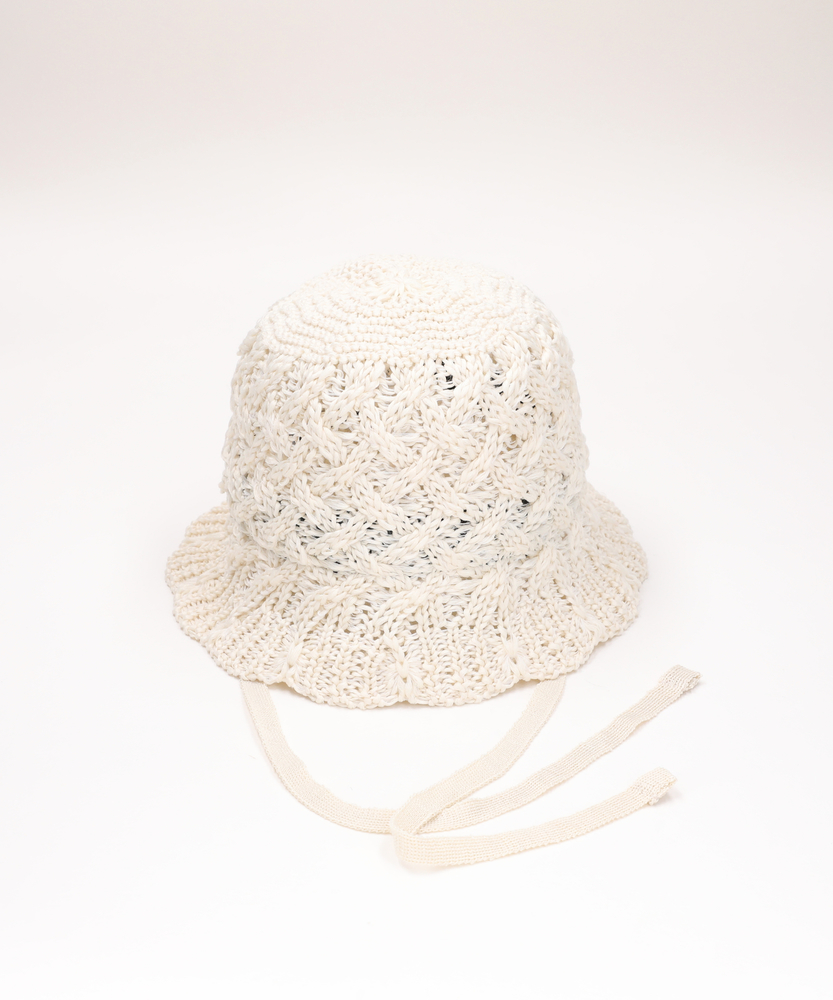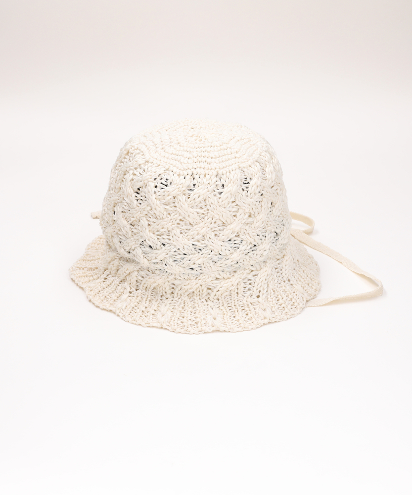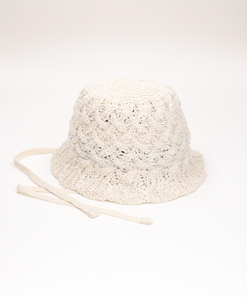 さっと被るだけで、いつもの装いが旬顔に。涼しげな透け感で魅せる大人の夏支度。実用性とデザイン性を兼ね備えた逸品。■Point・トレンド感漂うレース風の編地繊細な透け感が顔周りを明るく。カジュアルすぎず上品な印象に。季節感高まる軽やかな仕上がり。・アレンジ自在な華奢なあご紐そのまま垂らしてこなれ感を演出。リボン結びで女性らしさをプラス。風が強い日のお出かけにも安心。・おしゃれに叶える紫外線対策気になる日差しを優しくカバー。お出かけ時の頼れる味方です。実用性とおしゃれを両立しました。・ストレスフリーな軽い被り心地長時間被っても疲れにくい軽量設計。お散歩や旅行などにも最適です。毎日気軽にお使いいただけます。・自分サイズに合わせられる安心感内側のベルトでサイズ調整が可能。フィット感を簡単に変えられます。安定感のある被り心地を実現。・日常に馴染む洗練されたカラーどんな装いにも合わせやすい色味。ワードローブの定番として活躍。大人のこなれ感を引き立てます。【仕様】繊細なレース風の編地が目を惹く、トレンド感溢れるアイテムです。程よく下に落ちるブリムのシルエットが、顔周りをすっきりと見せてくれます。華奢な印象のあご紐は、そのままラフに垂らしたり、軽く結んだりと、その日の気分に合わせたアレンジが可能。さりげない女性らしさを引き立てる洗練されたフォルムです。【素材】軽くて扱いやすいポリエステル素材を100%使用しています。立体感のある編地は、型崩れしにくく、日常使いにぴったり。見た目にも涼しげな透け感があり、春夏シーズンの着こなしに軽やかさを添えてくれます。長時間の着用でも負担になりにくい、ふわりとした軽い被り心地が魅力です。【スタイリング】シンプルなTシャツやデニムに合わせるだけで、一気にこなれたカジュアルスタイルが完成します。ふんわりとしたワンピースやリネンシャツと合わせれば、リラクシーで上品なリゾート風スタイルに。あご紐の結び方を変えたり、髪をゆるくまとめたりすることで、様々な表情のスタイリングをお楽しみいただけます。