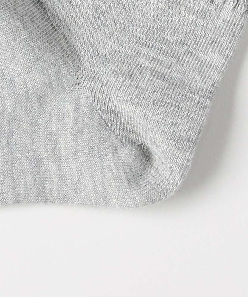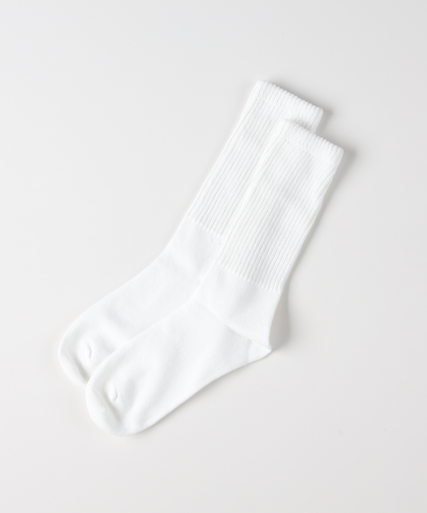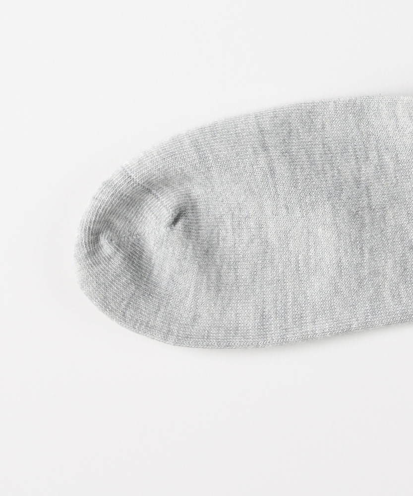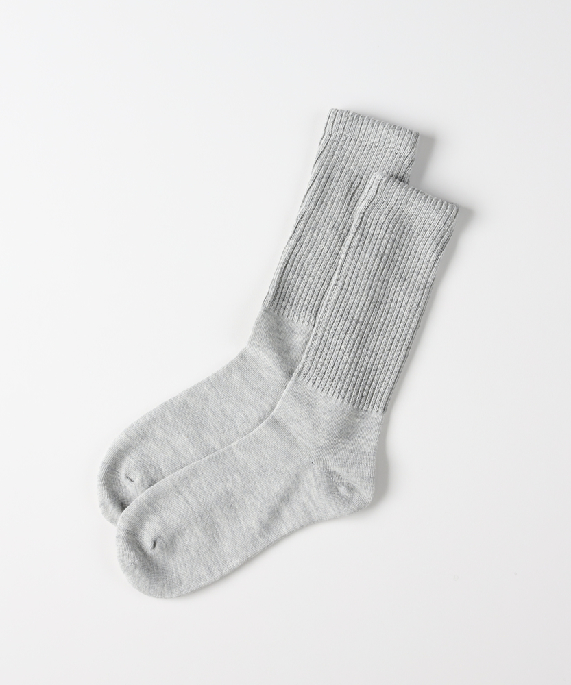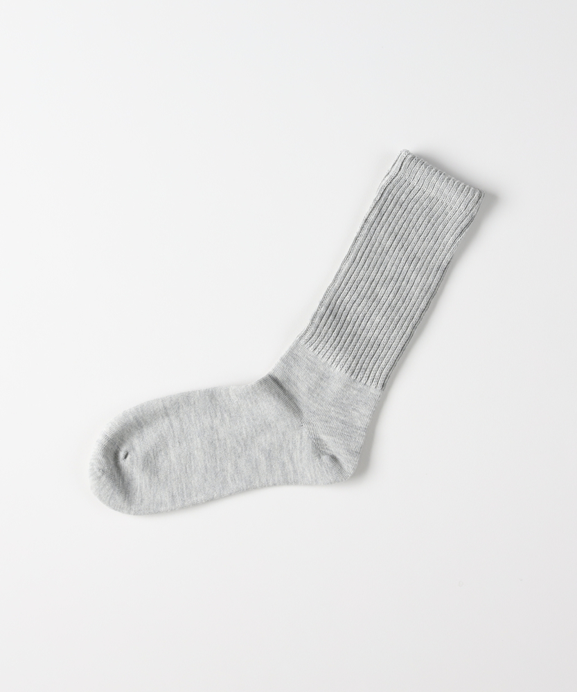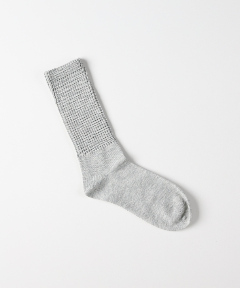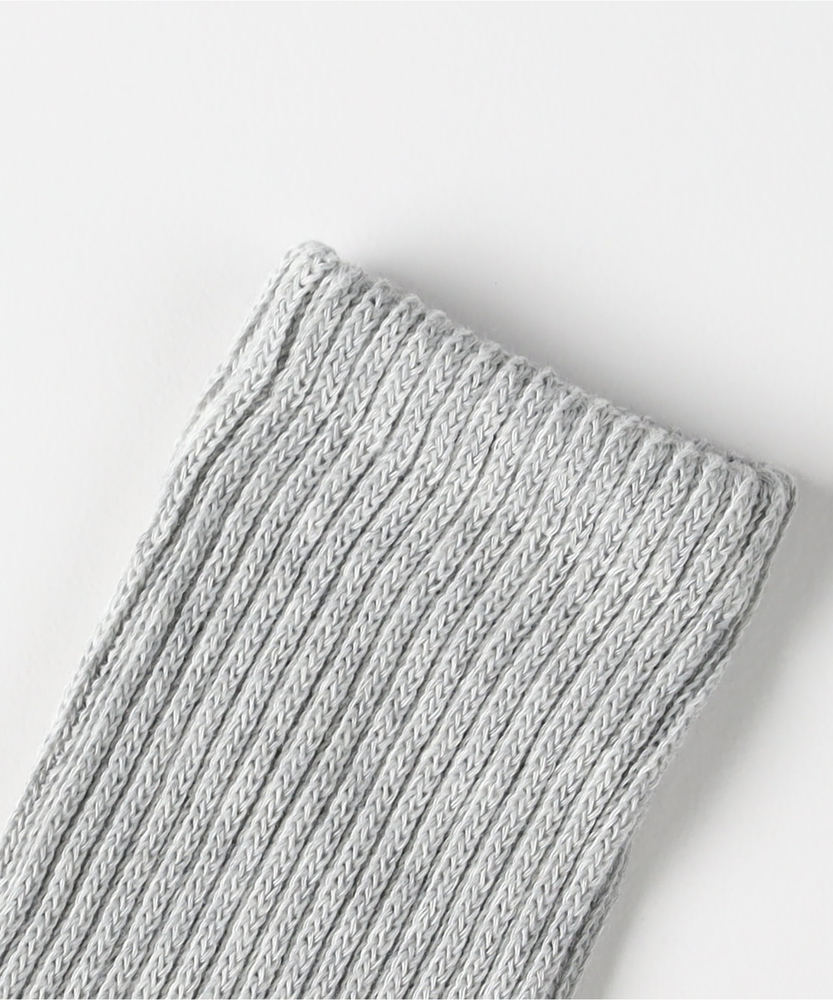 足元に、さりげない抜け感をプラス。締め付け知らずの心地よいフィット感。毎日履きたくなる、大人のためのリブ靴下。■Point・足首を締め付けないゆったり仕様ゴムの跡が残りにくい作り。夕方まで快適な履き心地をキープ。リラクシーな足元を演出します。・靴を選ばない切り替えデザイン足周り部分はすっきりとした平編み。スニーカーでももたつきません。快適な足取りをサポートします。・くしゅっとさせてこなれ感アップ少し落として履くのもおすすめ。自然なたるみがアクセントに。足首の華奢見えも叶えます。・毎日の着こなしに寄り添う万能さシンプルで無駄のないデザイン。カジュアルにもキレイめにも。出番が多くなること間違いなし。・足元を明るく見せるカラーリングどんな服にも馴染むベーシック色。ボトムスとの繋がりもスムーズ。スタイリングの邪魔をしません。・季節を問わず活躍する程よい厚み薄すぎず厚すぎない、絶妙な生地。一年を通して快適に履けます。ワードローブの頼れる相棒に。【仕様】足首から上にかけて、ゆったりとしたリブ編みを採用したクルー丈のソックスです。足元に適度なボリューム感を持たせつつ、甲からつま先にかけてはすっきりとした平編みで切り替えることで、靴を履いた際のごわつきを軽減しました。シンプルながらも、細部のシルエットにこだわったデイリーユースにぴったりの一足です。【素材】肌なじみが良く、柔らかな風合いの編み地を採用しています。シーズンを問わず履きやすい、程よい厚みを持たせており、長時間の着用でも快適な履き心地を保ちます。日常のケアもしやすく、毎日気兼ねなくお使いいただけるベーシックな仕上がりが魅力です。【スタイリング】スニーカーやローファーと合わせて、カジュアルな日常着の足元に抜け感をプラスするのがおすすめです。バレエシューズやパンプスに合わせれば、程よく肩の力が抜けたフレンチシックなスタイリングに仕上がります。少しルーズにたるませたりと、その日の気分やボトムスに合わせたアレンジをお楽しみください。