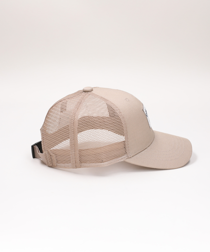 大人顔負けのクールなロゴデザイン。汗ばむ季節も快適、爽やかメッシュ。毎日のコーデを格上げするアクセント。■Point・大人顔負けの「ロゴデザイン」フロントの刺繍ワッペンがアクセント。シンプルながら存在感のあるアメカジテイスト。被るだけで一気におしゃれキッズに変身。・通気性抜群の「メッシュ仕様」頭の蒸れを逃がすメッシュ素材を採用。汗っかきなお子様でも一日中快適に。日差しの強い季節の熱中症対策にも最適です。・成長に合わせて「サイズ調整」バックベルトで簡単にフィット感を調整可能。成長の早いお子様でも長く愛用いただけます。風の強い日もしっかりフィットして安心。・合わせやすい「ベーシックカラー」どんなコーデにも馴染む落ち着いた色展開。ベージュやブラックは汚れも目立ちにくい。手持ちの服とも喧嘩せず自然にマッチします。・型崩れしにくい「フロントパネル」おでこ部分はしっかりとした生地感。きれいなシルエットをキープします。ラフに扱ってもかっこよさが崩れません。・男女問わず使える「ユニセックス」男の子も女の子も似合う普遍的なデザイン。兄弟姉妹でのリンクコーデやシェアも可能。ギフトとしても喜ばれるアイテムです。【仕様】カリフォルニアの空気感を感じさせる、クラシカルなロゴワッペンが主役のキャップです。無駄のないシンプルなフォルムに、ヴィンテージライクな書体が映える大人顔負けの仕上がり。ツバのカーブが絶妙で、お子様の顔まわりをすっきりと見せてくれます。後ろ姿のアジャスターベルトも、スポーティになりすぎないスタイリッシュなアクセントになっています。【素材】フロント部分はハリがあり、きれいな形を保つしっかりとした生地を使用しています。後頭部は通気性に優れたメッシュ素材で、熱がこもりにくく軽やかな被り心地を実現しました。肌に触れる内側のスベリ部分も丁寧に作られており、長時間被ってもストレスを感じにくい仕様です。アクティブに動き回るお子様の日常に寄り添う、実用的な素材使いです。【スタイリング】Tシャツにデニムといった王道のアメカジスタイルはもちろん、シャツスタイルのハズしアイテムとしても活躍します。女の子ならワンピースやスカートと合わせて、甘辛ミックスなコーディネートを楽しむのもおすすめ。公園遊びなどのアクティブなシーンから、家族でのお出かけスタイルまで、いつもの服にプラスするだけでグッと垢抜けた印象に仕上がります。