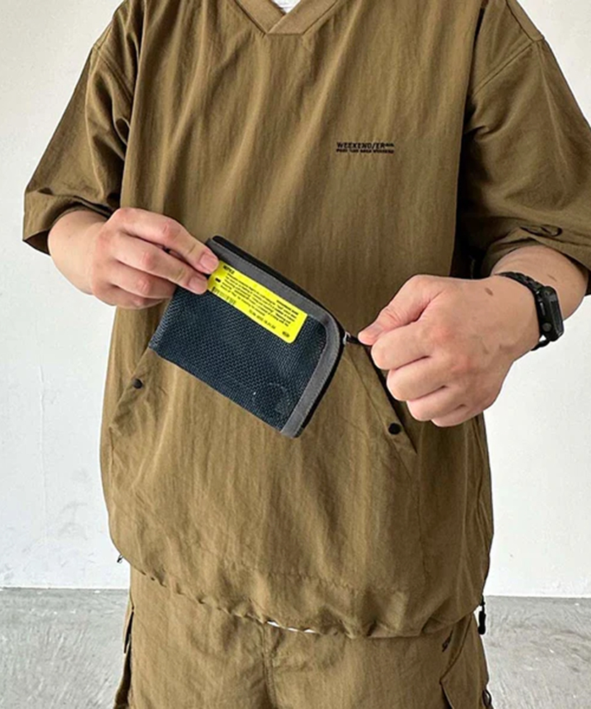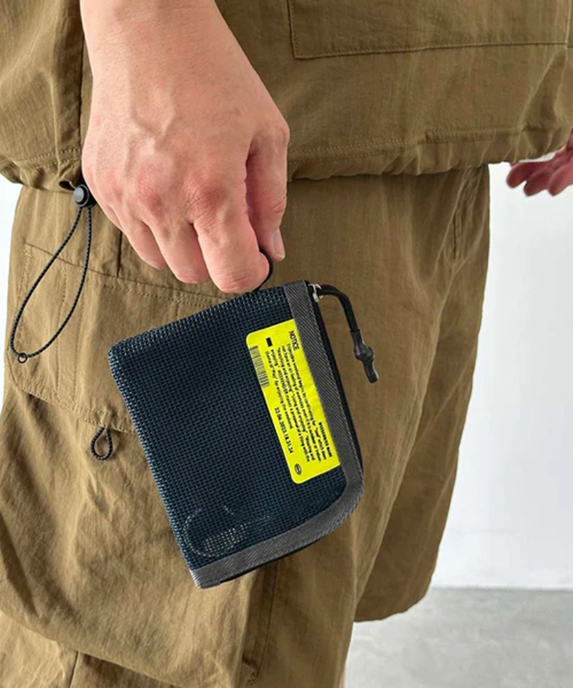 PVC MESH MULTI CASE塩ビでコーティングされた硬めのメッシュ生地を使用したマルチケースです。カードや鍵、小銭などを入れて財布としても使用できます。ファスナーはL字に開くので、出し入れがしやすく中が見えやすいのも便利です。