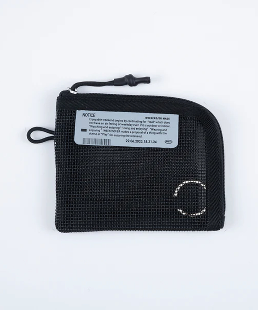 PVC MESH MULTI CASE塩ビでコーティングされた硬めのメッシュ生地を使用したマルチケースです。カードや鍵、小銭などを入れて財布としても使用できます。ファスナーはL字に開くので、出し入れがしやすく中が見えやすいのも便利です。