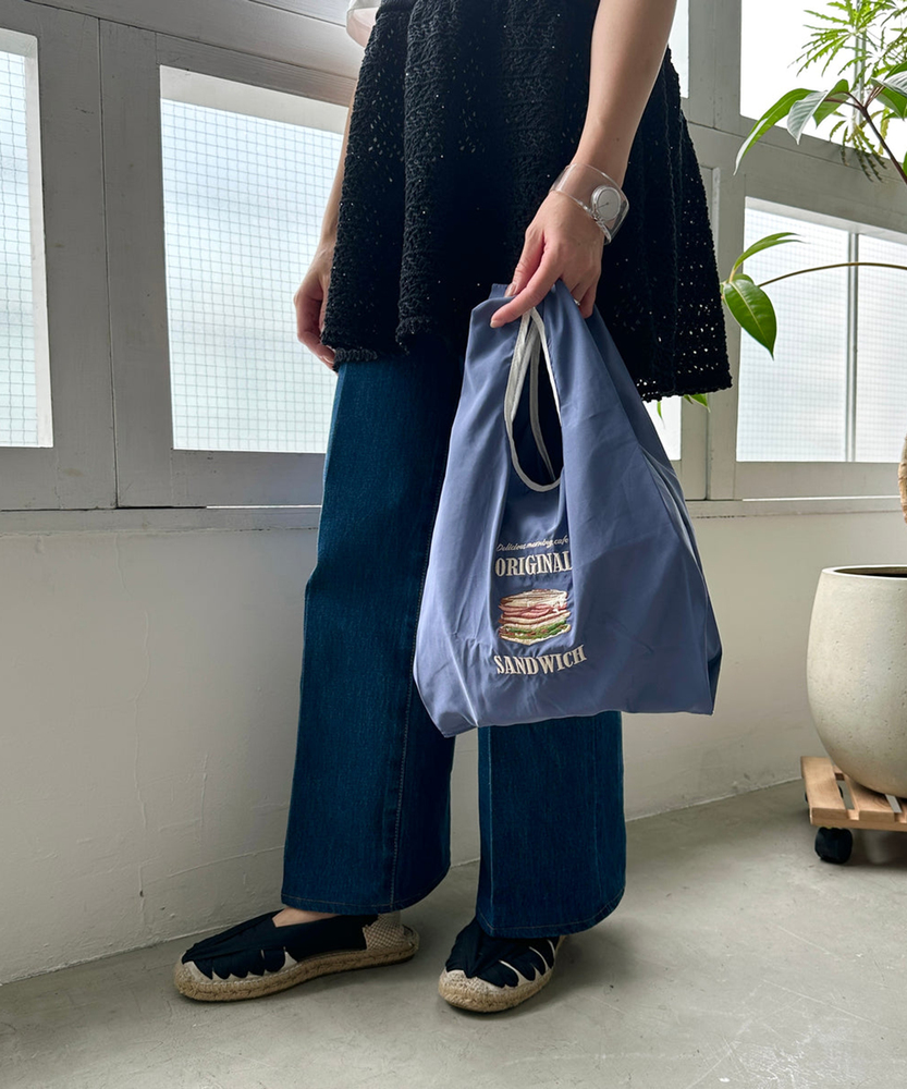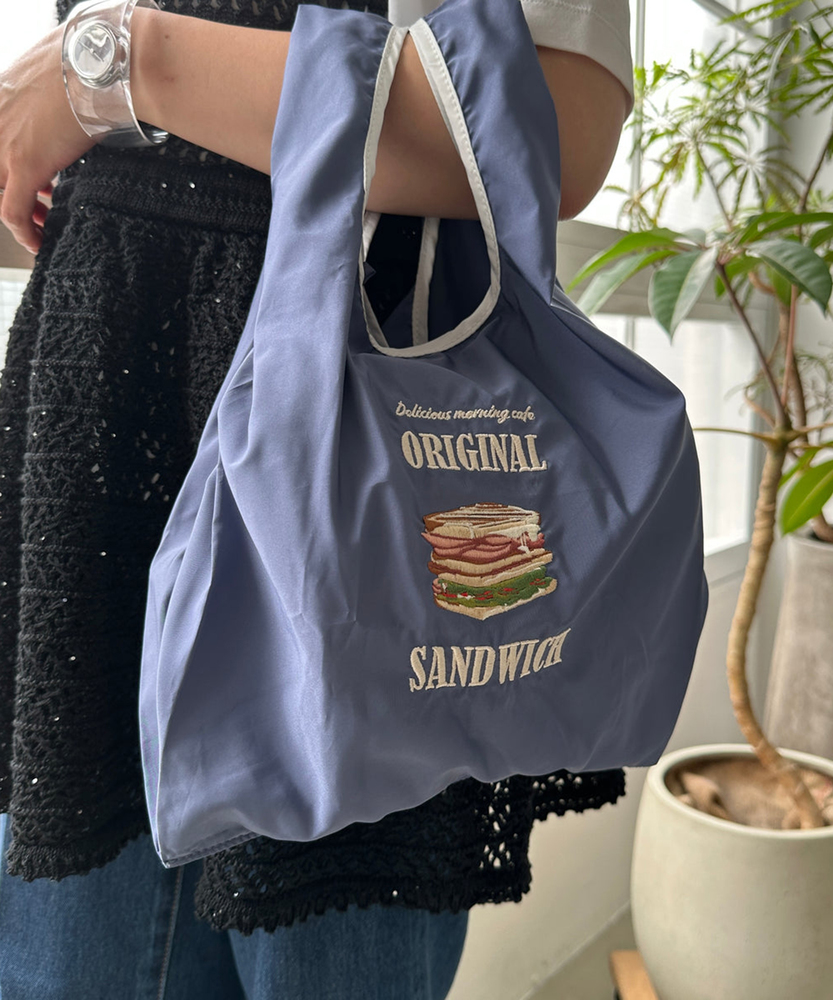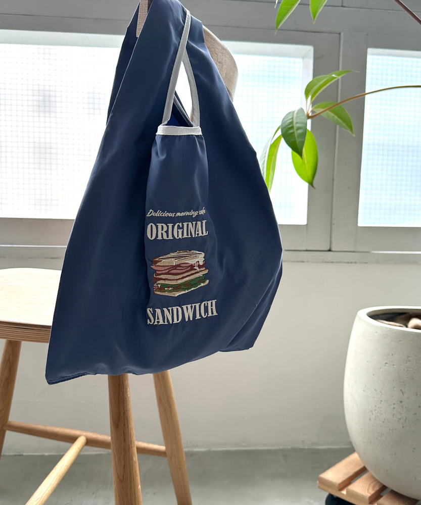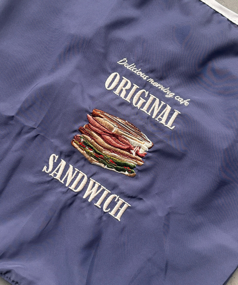 カフェメニューをモチーフにした刺繍ミニマルシェバッグ。ちょっとしたお出かけやお買い物にぴったりな小さめサイズのエコバッグです。折りたたんでコンパクトに収納できるポーチがバッグの内側についています。近所のカフェやおつかいに行く時にちょうど良いサイズです。小さなサイズなので、バッグの中でも邪魔にならず、必需品として毎日持っていくのにもぴったり。