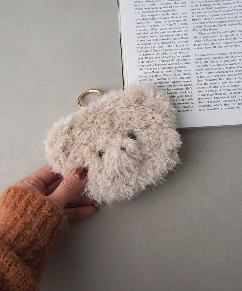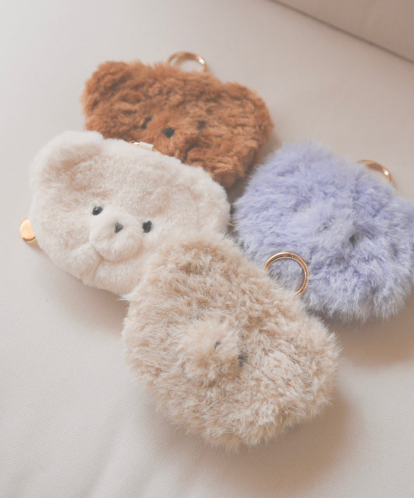テディベアのお顔のファーチャームポーチ。 小物コスメや携帯カイロ・充電式携帯カイロなどの収納に丁度いいサイズのポーチです。カラビナ付きなのでバッグチャームとしても使えるかわいいポーチです。よく使うリップや、バッグの中で迷子になりやすい小物を入れておくと便利◎カラビナを外せば、手洗いも可能です。