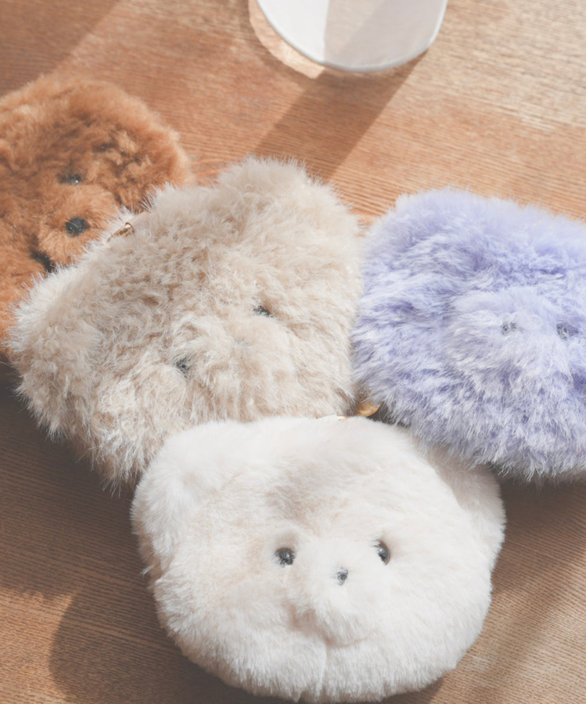 テディベアのお顔のファーチャームポーチ。 小物コスメや携帯カイロ・充電式携帯カイロなどの収納に丁度いいサイズのポーチです。カラビナ付きなのでバッグチャームとしても使えるかわいいポーチです。よく使うリップや、バッグの中で迷子になりやすい小物を入れておくと便利◎カラビナを外せば、手洗いも可能です。