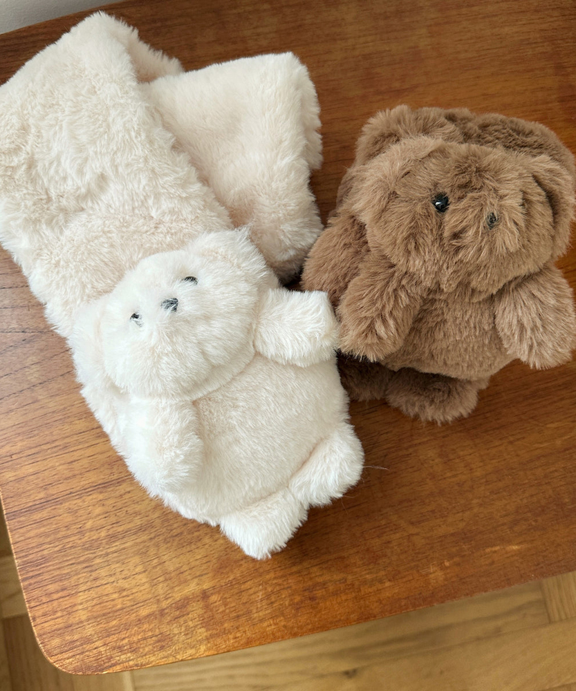 ぬいぐるみたいに可愛いテディネックウォーマー。肌あたりの良いふわさらのファーを使用した、付け心地・温かさが抜群のネックウォーマーです。大人・こども兼用サイズなので親子で使用することもできます。ポケッタブル仕様で、使用しない時はコンパクトにできます 。ポケッタブル状態がまるでくまのぬいぐるみのようでなんとも愛らしい。