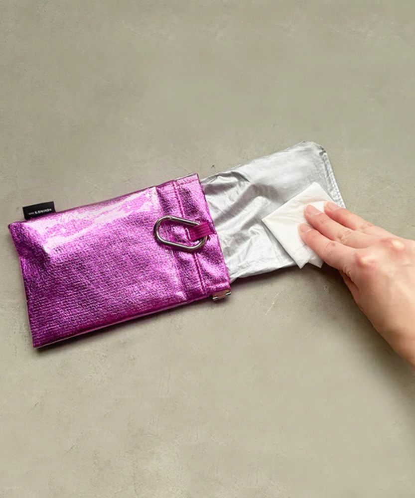 外出先で出てしまう、ちょっとしたゴミを持ち帰ろう!外出先で出てしまう小さなゴミをすっきり収納。クリアポケットには目薬や絆創膏、のど飴などを収納するのにぴったりです。またお気に入りのチャームやステッカーを入れて、自分らしくアレンジも楽しめます。キラッとした生地がバッグのアクセントに。