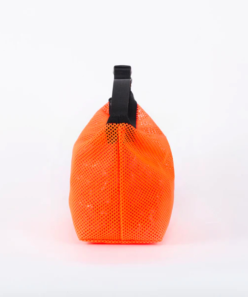 厚手でしなやかな素材感のメッシュ生地を使用した定番のシリーズ。ポーチはファスナー開閉でテープハンドルが付いた仕様。また別売りのMULTI WAVE BELTを付属させる事でショルダーバッグとしても使用可能。