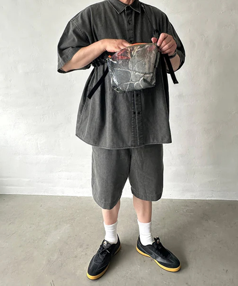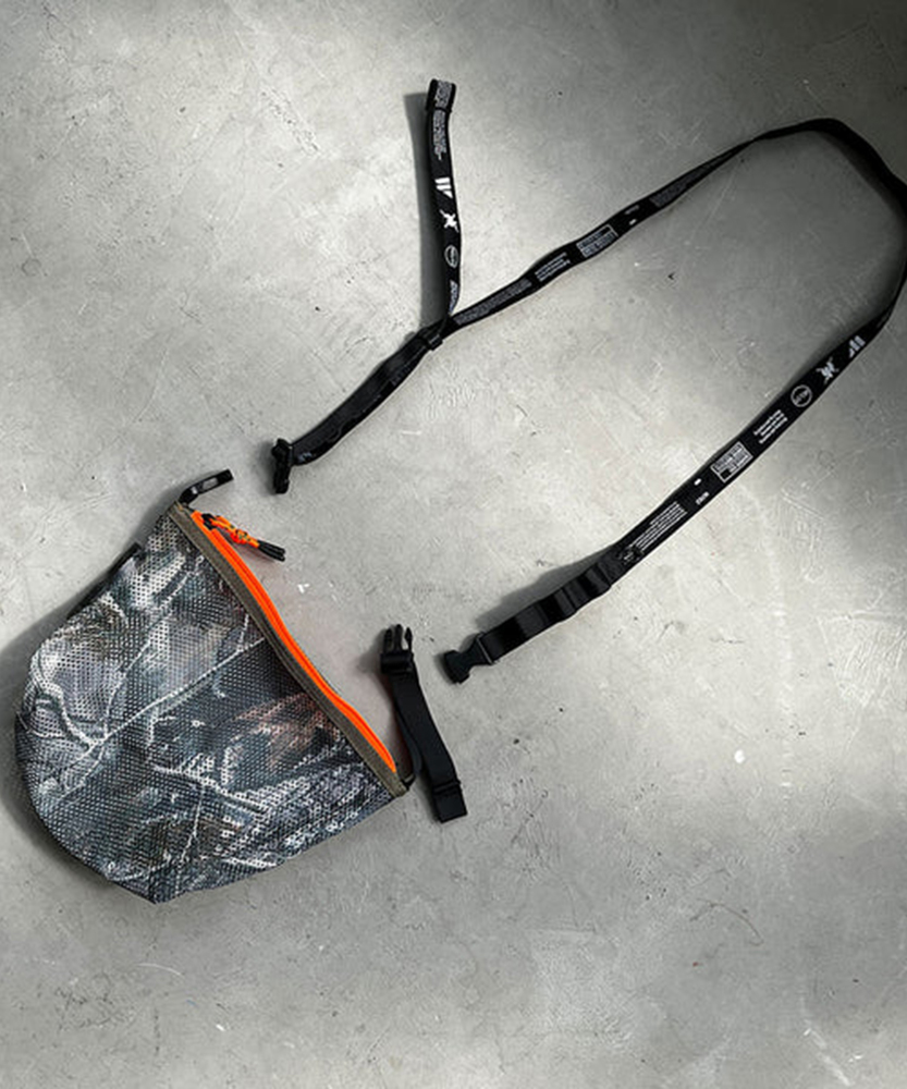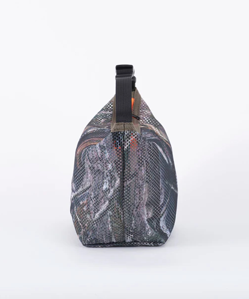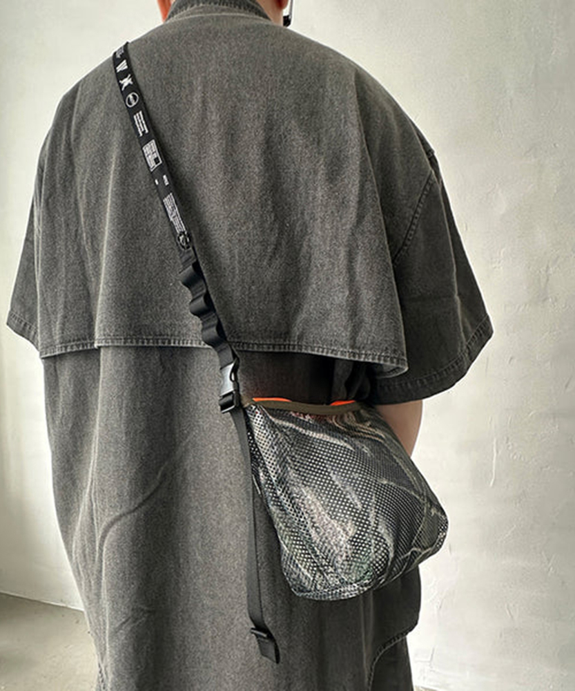 厚手でしなやかな素材感のメッシュ生地を使用した定番のシリーズ。ポーチはファスナー開閉でテープハンドルが付いた仕様。また別売りのMULTI WAVE BELTを付属させる事でショルダーバッグとしても使用可能。