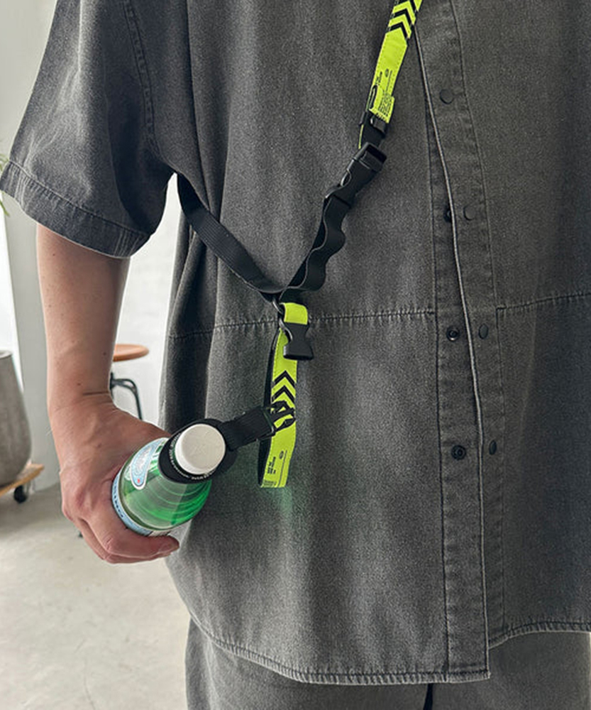 ペットボトルのネックに装着してぶら下げて歩ける、夏にはかかせないアイテム。このままペットボトルをぶら下げてもよし別売のMULTI WAVE BELTにジョイントして斜め掛けにしてもよしなペットボトルホルダー。夏のフェスやレジャーに便利なアイテム。