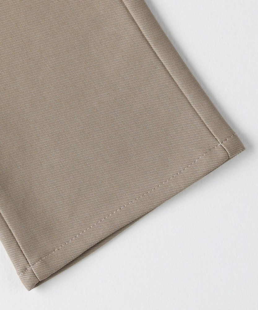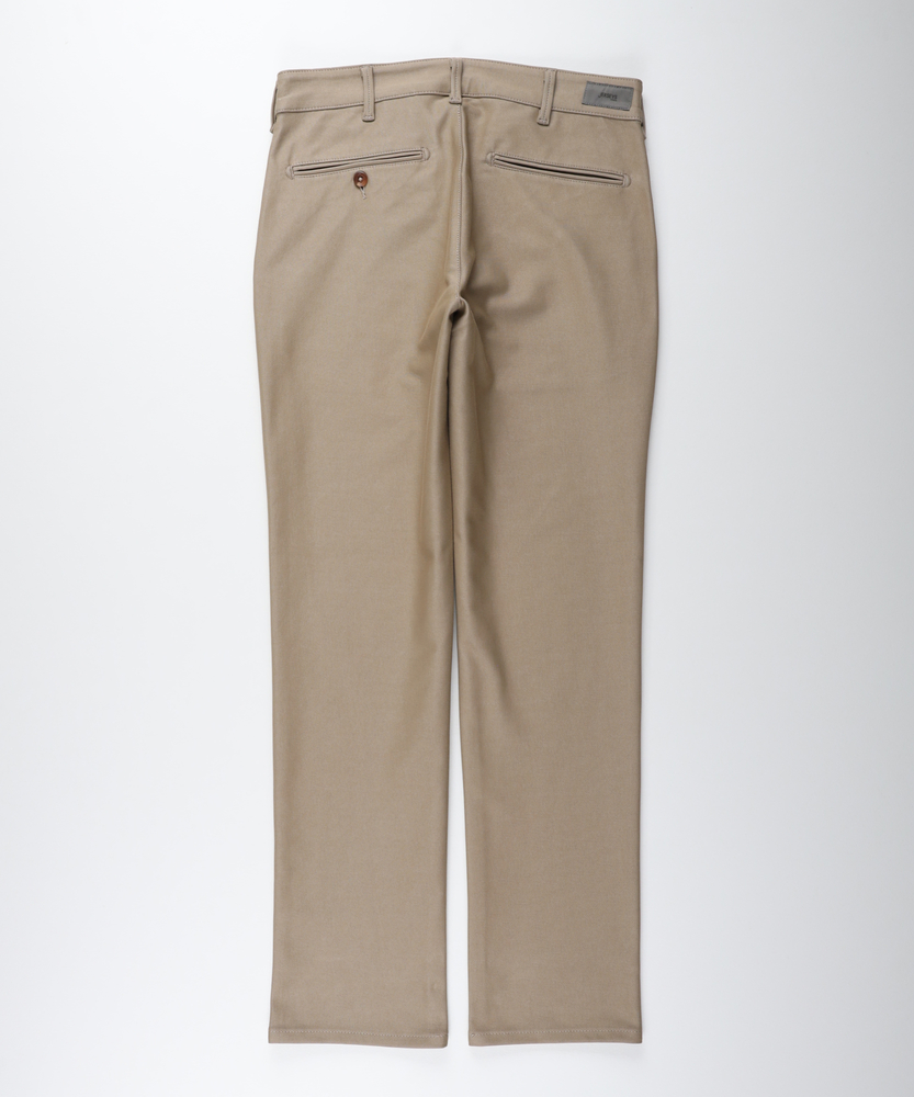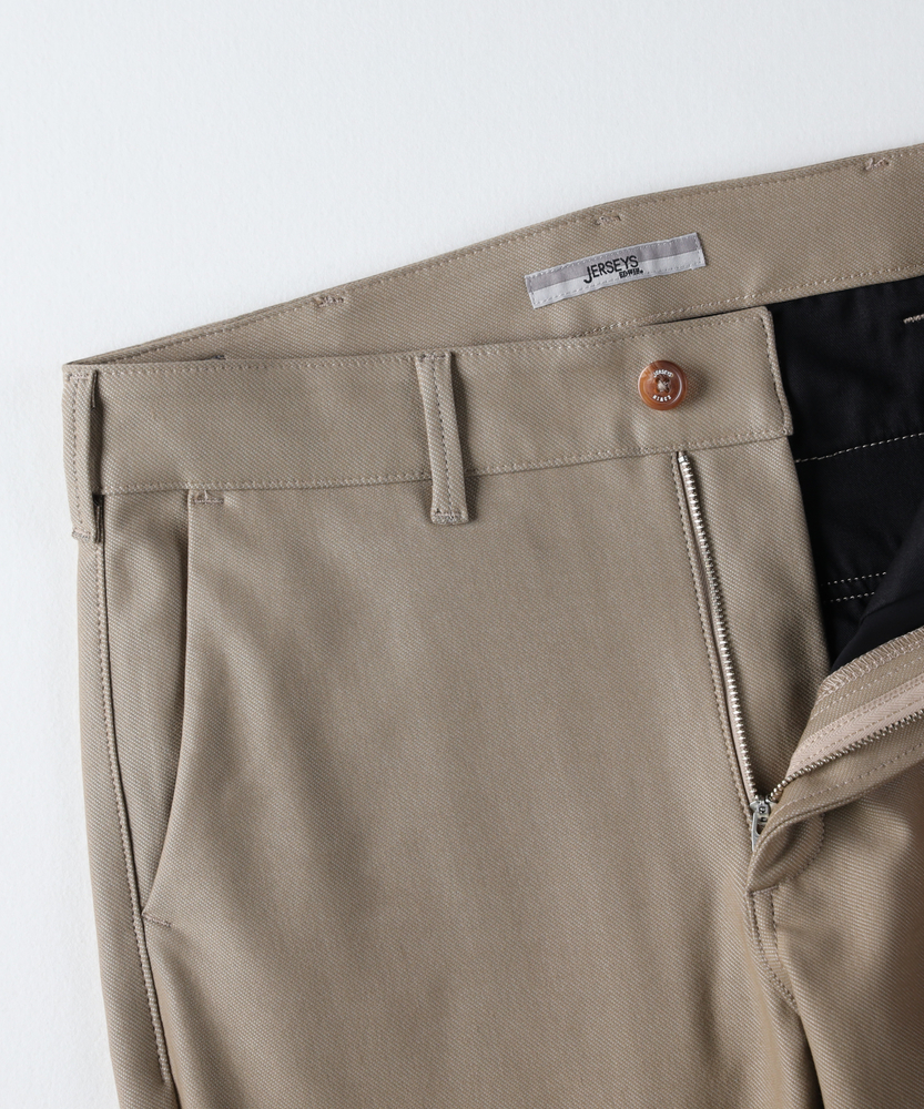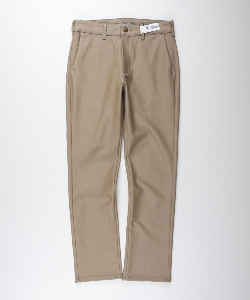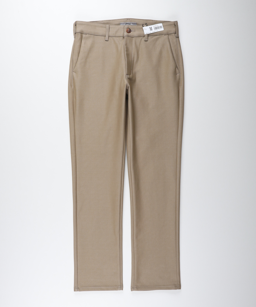 【仕様】洗練されたストレートシルエットが特徴のチノレギュラー。シンプルでありながらも、スタイリッシュな印象を与えるデザインは、ビジネスシーンからカジュアルまで幅広く活躍します。スリムストレートフィットで、すっきりとしたラインを演出します。【素材】 全方向に伸縮するニット×ニットのボンディング素材を使用。肌面には柔らかな合繊ニットをボンディングし、動きやすさと快適なはき心地を実現。シワになりにくく、速乾性も高いため、日常使いにぴったりのイージーケアアイテムです。 【スタイリング】 シンプルなシャツやポロと合わせて、クリーンで洗練されたスタイルを楽しめます。カジュアルなスニーカーや、ビジネスシーンに適した革靴と組み合わせることで、シーンを選ばず活躍する一着です。