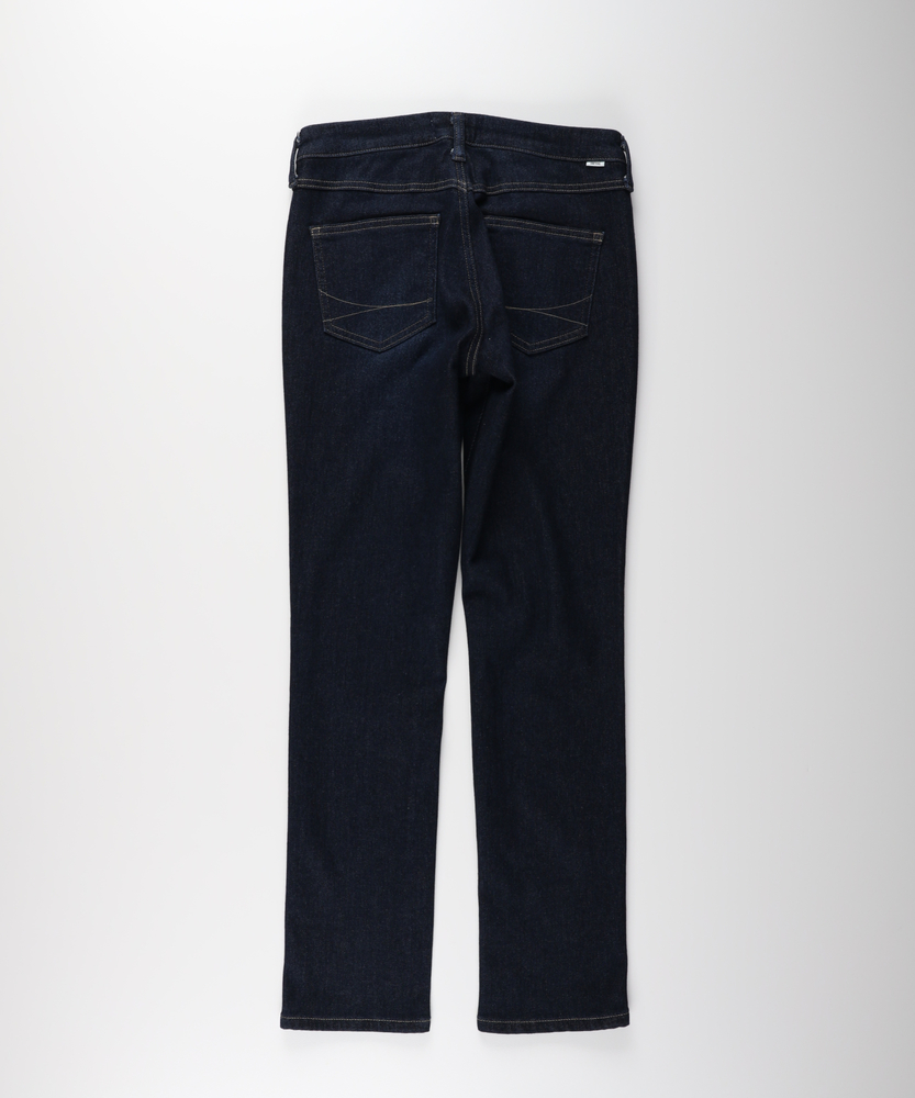 【仕様】腰回りはすっきり見えるミッドライズ、腿から裾へ程よく細くなるテーパードで脚長効果を演出。クラシックな5ポケットにさりげないヒゲ加工とコントラストステッチが都会的な抜け感を添え、ON/OFF問わず頼れるワードローブの定番に仕上げました。パターンワークで穿いたときのラインを美しく見せます。【素材】 しっかりとした表情のデニムを使用し、程よいハリとしなやかさを両立。フォルムを保ちつつ体の動きに寄り添い、着用を重ねるごとに馴染んで味が出ます。耐久性と扱いやすさを兼ね備え、デイリーに気兼ねなく取り入れられる一着です。 【スタイリング】 クリーンなシャツや上質なニットと合わせれば洗練されたオフィスカジュアルに。ローファーで知的に、ヒールで女性らしい抜け感を出し、スニーカーで軽やかに外すことも可能。ベーシックな色合いで小物使いが際立ちます。