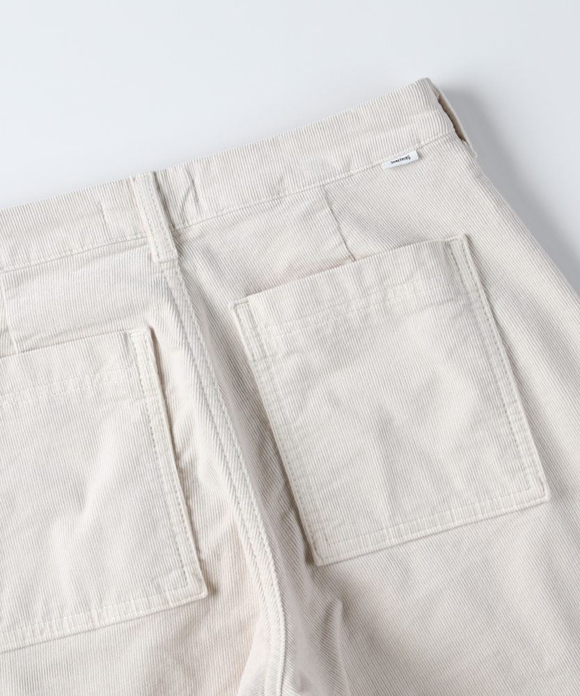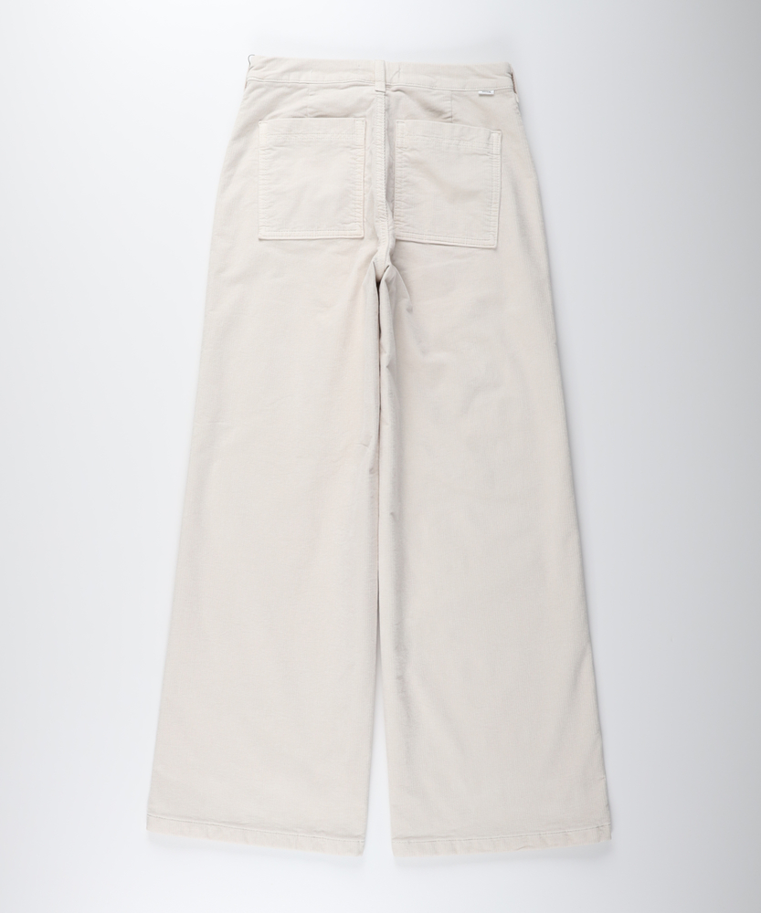 【仕様】腰まわりはすっきり、裾にかけてゆったり広がるワイドシルエット。前後に配した大きめのパッチポケットとベルトループがワークテイストを程よく引き算し、都会的な抜け感を演出します。【素材】 しっかりとしたハリを持ちながら肌当たりは柔らかく、フォルムを美しく保つ生地感。日常使いに耐えるタフさと、洗濯後の扱いやすさで長く頼れる一着です。 【スタイリング】 トップスはタックインしてウエストを強調するとバランス良く映ります。クリーンなシャツやコンパクトなニット、ローファーやスニーカーで都会的にまとめ、アクセントに細めベルトやゴールド小物を。