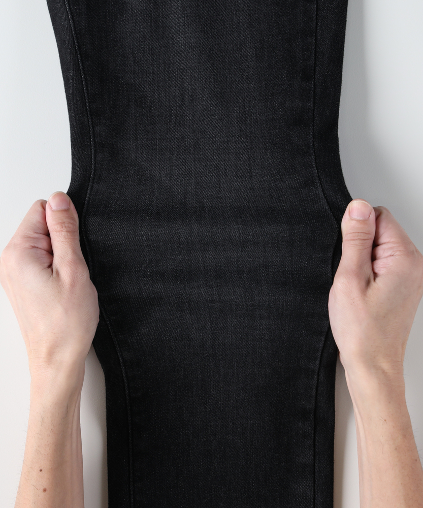 【仕様】腰まわりは程よくフィットし、膝下にかけてすっきり細くなるテーパードシルエット。控えめな5ポケットとミニマルなステッチで洗練された佇まいに仕上げ、ベルトループでスタイリングの幅も広がります。【素材】 目の詰まったデニムライクな生地感で程よいハリと自然な落ち感を両立。身体のラインを整えつつ形をキープするため、きちんとした着こなしから日常のカジュアルまで品よく馴染みます。 【スタイリング】 クリーンなワントーンでジャケット合わせに好相性。スニーカーで抜け感、ヒールでシャープに見せるなどシューズで表情を変えられ、ロングシャツやフォルムシャツのインアウトで様々な着こなしが楽しめます。