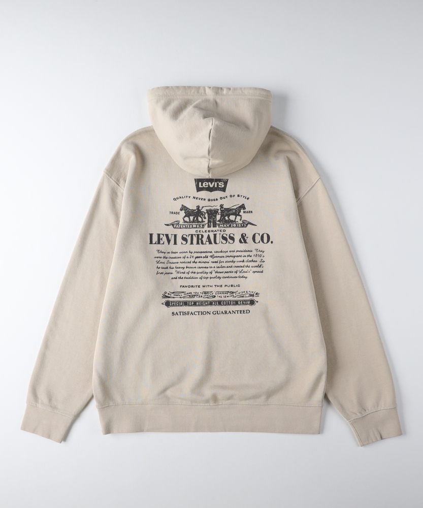【仕様】シンプルながらも印象的なプリントが特徴のスウェットパーカー。フロントのロゴはカジュアルな雰囲気を引き立て、バックにはクラシックなグラフィックが施されています。トレンドを意識したデザインで、こなれ感を演出します。【素材】 柔らかなスウェット生地は、着心地抜群。適度な厚みにより、温かさを保ちながらも通気性に優れています。デイリーユースに最適で、季節を問わず心地よく着用できます。 【スタイリング】シンプルなパンツを合わせて、カジュアルでありながら洗練されたスタイルが完成します。スニーカーやレザーシューズと合わせて、アクティブながらも大人の雰囲気を演出してみてください。※こちらの商品のサイズ表記はUSサイズとなります。※サイズ情報の実寸をご確認の上、サイズをお選びください。※■注意事項 「(R)」のみが表記されたレッドタブは、LEVI'Sの文字が含まれるレッドタブと同様に製品不具合ではありません。この商標権を法的に保護する活動の一環として、リーバイ・ストラウス社では全体商品のうち数パーセントの割合で「(R)」のみを表記したレッドタブを付しております。不良品ではございませんので、交換・返品をお受けできません。また、メーカーの仕様変更により「LeVI'S」、「LEVI'S」(大文字の「E」表記)のタブが混在している場合がございますが、こちらもタブの種類はお選びいただけませんので、予めご了承くださいませ。