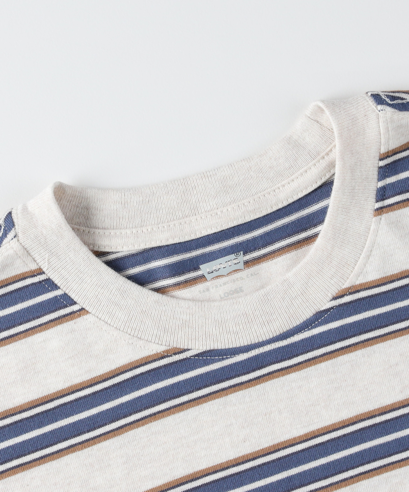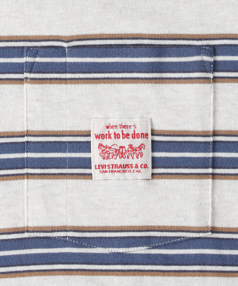 男心をくすぐる、本格ワークテイストのディテール。一枚でこなれ感を演出する、絶妙なマルチボーダー。大人の日常に寄り添う、リラックス感溢れる一着。■Point・遊び心のあるマルチボーダーネイビーとブラウンの配色。カジュアルすぎず大人な印象。一枚でサマになるデザインです。・存在感のある胸ポケット左胸に実用的なポケットを配置。のっぺりとした印象を回避。着こなしのアクセントに。・今どきのリラックスシルエット肩を落とした絶妙なサイズ感。体のラインを拾わず快適。自然な抜け感を演出します。・タフな印象のネックライン首周りは程よく詰まった仕様。だらしなく見えず清潔感をキープ。大人のカジュアルに最適です。・頼りになる汎用性の高さ主役としてもインナーとしても。幅広いボトムスと好相性。毎日のコーデに活躍します。【仕様】ナチュラルなベースカラーに、ネイビーとブラウンのラインを効かせたマルチボーダー柄が目を惹く一枚。左胸には実用的なポケットとともに、ブランドの歴史を感じさせるヴィンテージライクなラベルを配置し、ワークテイストなアクセントを加えています。肩を程よく落としたゆとりのあるシルエットが、今どきの抜け感を演出します。【素材】日常使いに嬉しい、肌当たりの良いしっかりとした風合いの生地感を採用。一枚で着ても安心感があり、インナーとしても使いやすい程よい肉厚感が魅力です。着込むほどに肌に馴染み、愛着の湧くアイテムへと育っていく過程を楽しめます。落ち着いたトーンの配色は、シーズンを問わず長く活躍してくれます。【スタイリング】ブランドのルーツである王道のデニムパンツと合わせるだけで、男らしく洗練されたカジュアルスタイルが完成します。ペインターパンツやカーゴパンツと合わせて、とことんワークテイストにまとめるのもおすすめ。一枚着としてはもちろん、シャツやライトアウターのインナーとして柄を覗かせれば、着こなしの良いアクセントになります。【Levi‘s】1853年、米国にて創業。当初、金鉱の作業員の為に制作したワークパンツは後に素材がデニムに変更され、 1890年に全てのジーンズの原点である、ロットナンバー「501」が誕生しました。その後、1940年代から西海岸で501の流行が始まり、ジーンズはワークパンツからファッションアイテムとしての進化を始めました。現在まで様々なモデルをリリースし、トレンド、ヴィンテージブームを牽引。ファッションシーンにおいて今なお多大な影響を与え続けています。※こちらの商品のサイズ表記はUSサイズとなります。※■注意事項 「(R)」のみが表記されたレッドタブは、LEVI'Sの文字が含まれるレッドタブと同様に製品不具合ではありません。この商標権を法的に保護する活動の一環として、リーバイ・ストラウス社では全体商品のうち数パーセントの割合で「(R)」のみを表記したレッドタブを付しております。不良品ではございませんので、交換・返品をお受けできません。また、メーカーの仕様変更により「LeVI'S」、「LEVI'S」(大文字の「E」表記)のタブが混在している場合がございますが、こちらもタブの種類はお選びいただけませんので、予めご了承くださいませ。