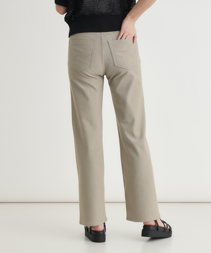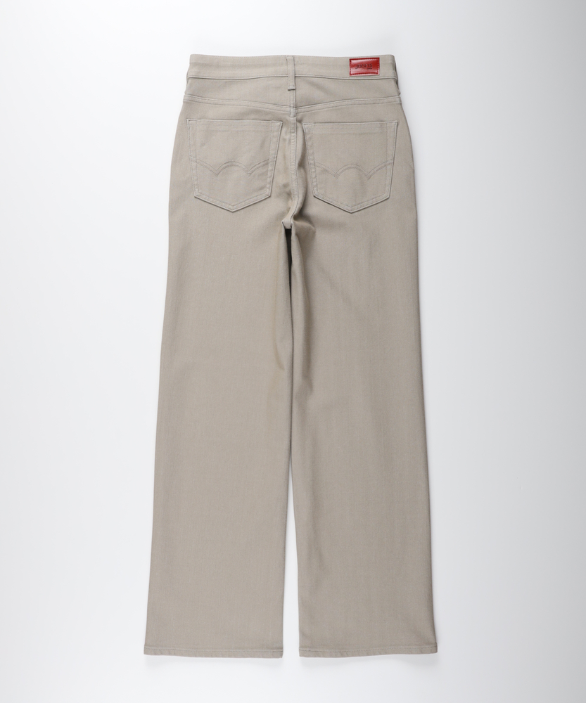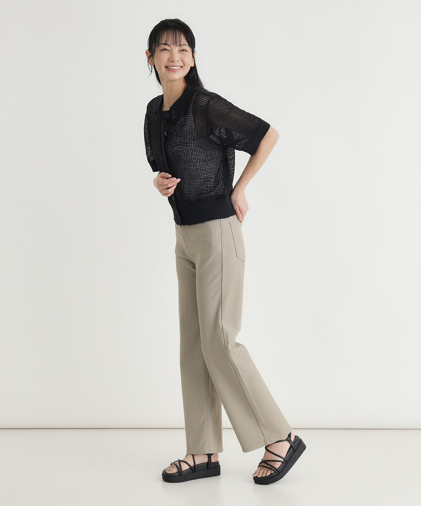 暑い日も涼しい顔で。品よく穿ける大人のサマーデニム。柔らかなニュアンスカラーが、夏の装いに洗練をプラス。穿いていることを忘れるほどの軽さと、驚きのストレッチ性。■Point・ひんやり快適な接触冷感触れた瞬間に涼しさを実感。暑い夏のお出かけを快適に。心地よい肌触りが続きます。・風が抜ける鹿の子編み通気性に優れたニット生地。汗ばむ季節も肌離れが良く。サラッとドライな状態をキープ。・全方向に伸びるストレッチ動きに合わせてしなやかに。長時間の移動や座り姿勢も。締め付け感なくノーストレス。・ナイロン混で驚きの軽さ裏糸の工夫で軽量化を実現。デニム特有の重さを解消。足取りまで軽くなる穿き心地。・すっきり美脚ワイドシルエット太ももから裾へ緩やかに広がる。気になる脚のラインをカバー。太すぎない絶妙なバランス感。・肌に馴染むクリーンなカラー優しげで上品なニュアンスカラー。カジュアルを大人っぽく昇華。どんなトップスとも好相性です。【仕様】太ももから裾にかけて緩やかに広がる、脚長効果が期待できるワイドシルエット。細すぎず太すぎない絶妙なバランスで、大人の女性がすっきりと穿きこなせるデザインです。肌馴染みの良いクリーンな色合いが、カジュアルな着こなしの中に上品さと抜け感をプラス。歩くたびに美しく揺れる裾が、涼しげで女性らしい印象を与えます。【素材】ポロシャツでお馴染みの「鹿の子編み」を採用したニットデニム。通気性が良く肌離れに優れるため、汗ばむ時期でもサラッと快適です。さらに、触れるとひんやり気持ち良い接触冷感機能を搭載。全方向への抜群のストレッチ性と、裏糸にナイロンを使用したことによる軽やかさで、長時間の着用でもストレスフリーな穿き心地を叶えます。【スタイリング】柔らかなニュアンスカラーを活かして、ホワイトやベージュ系のトップスを合わせたワントーンコーデがお洒落です。リネン素材のシャツやブラウスを合わせれば、さらに涼しげでリラクシーな大人の休日スタイルが完成します。足元にはフラットなサンダルや軽やかなスニーカーを合わせ、こなれ感のある着こなしをお楽しみください。【EDWIN】日本が誇る国産ジーンズブランド。1947年より米軍払い下げ衣料の卸を行っていた常見米八商店は、日本人の体型に合ったジーンズを自分たちの手で作るべく1961年に「EDWIN」のレーベルを冠した、初の国産ジーンズを作った。国産の品質と常に新しいものを生み出し続ける探究心は、海外の愛好家からも高い評価を得ています。