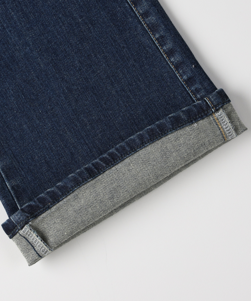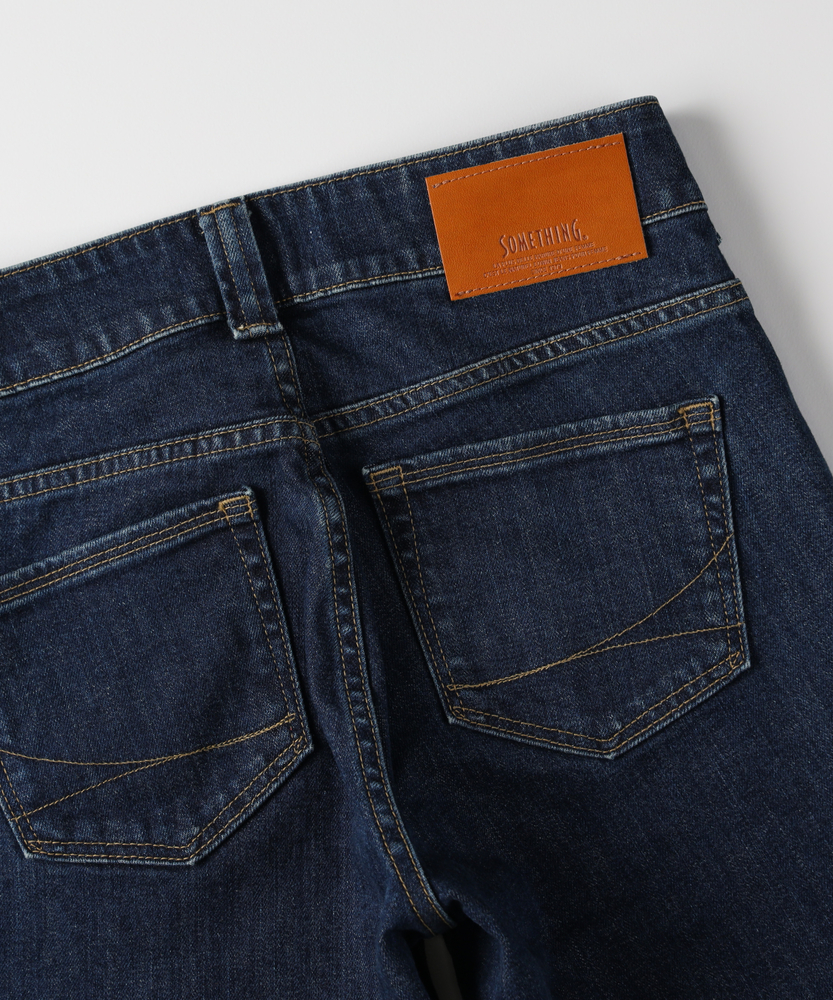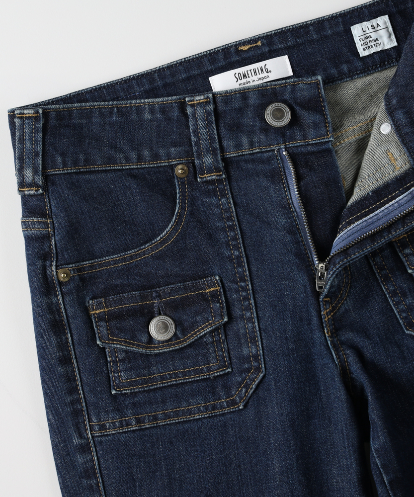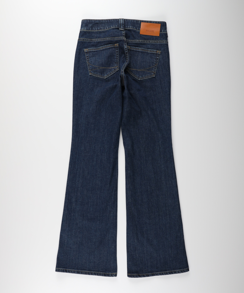 【仕様】ヴィンテージライクなブッシュポケットを配しつつ、計算されたフレアシルエットで都会的に仕上げた一本です。膝位置を高く設定した構築的なラインが、纏うだけで驚くほどの脚長効果とスタイルアップを叶えます。シルバーのボタンや丁寧なステッチワークが、洗練された大人のカジュアルスタイルにモダンなアクセントを加えます。【素材】 深みのあるインディゴブルーが美しい、上質なデニム素材を使用しました。適度な厚みがレッグラインを美しく補正し、穿き込むほどに身体に馴染む風合いを楽しめます。カジュアルになりすぎないクリーンな表面感は、大人の女性のデイリーウェアとして品格を保ちながら、シーズンレスで長く愛用できる頼もしさがあります。 【スタイリング】 クリーンな白のフォルムシャツをタックインすれば、知性と女性らしさが同居する洗練された装いに。足元はヒールを合わせて、フレアラインの美しさを最大限に引き立てるのが正解です。ジャケットを羽織ればオフィスシーンにも馴染み、休日には上質なカットソーでリラックスムードを楽しむなど、大人の日常に寄り添う万能な一本です。