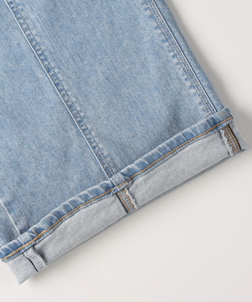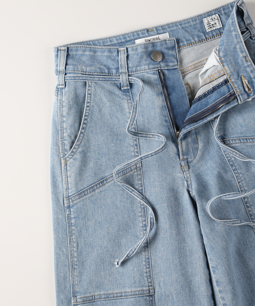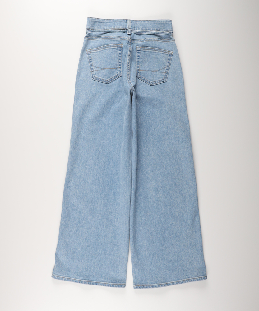 【仕様】ワークテイストなベイカーポケットをモダンに昇華させた、大人のためのワイドデニムです。フロントに入った縦の切り替えラインが視覚的なIラインを作り出し、リラックスした穿き心地ながらも脚長効果とスタイルアップを叶えます。ウエストにあしらわれた華奢なリボンベルトが、カジュアルな中にも女性らしい繊細なエッセンスを添え、メリハリのあるシルエットを演出します。【素材】 本格的なデニムの表情を持ちながらも、肌あたりは優しくしなやか。ごわつきを抑えたソフトな風合いが、歩くたびに美しいドレープを生み出し、洗練されたワイドシルエットをキープします。季節を問わずデイリーに愛用できる適度な厚みがありつつ、長時間座っていても疲れにくいストレスフリーな着心地を実現しています。 【スタイリング】 クリーンな白のフォルムシャツをウエストインして、リボンをアクセントにした知的なスタイリングがおすすめ。足元にはベージュやゴールドのパンプスを合わせることで、カジュアルなデニムスタイルがぐっと都会的で洗練された印象に変わります。休日は定番のボーダートップスと合わせて、リラックス感のあるフレンチシックな装いをお楽しみください。