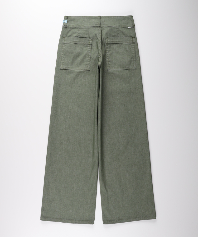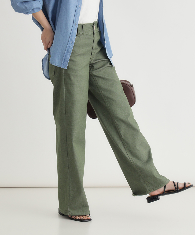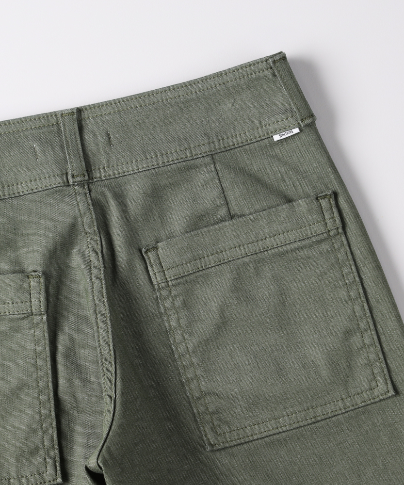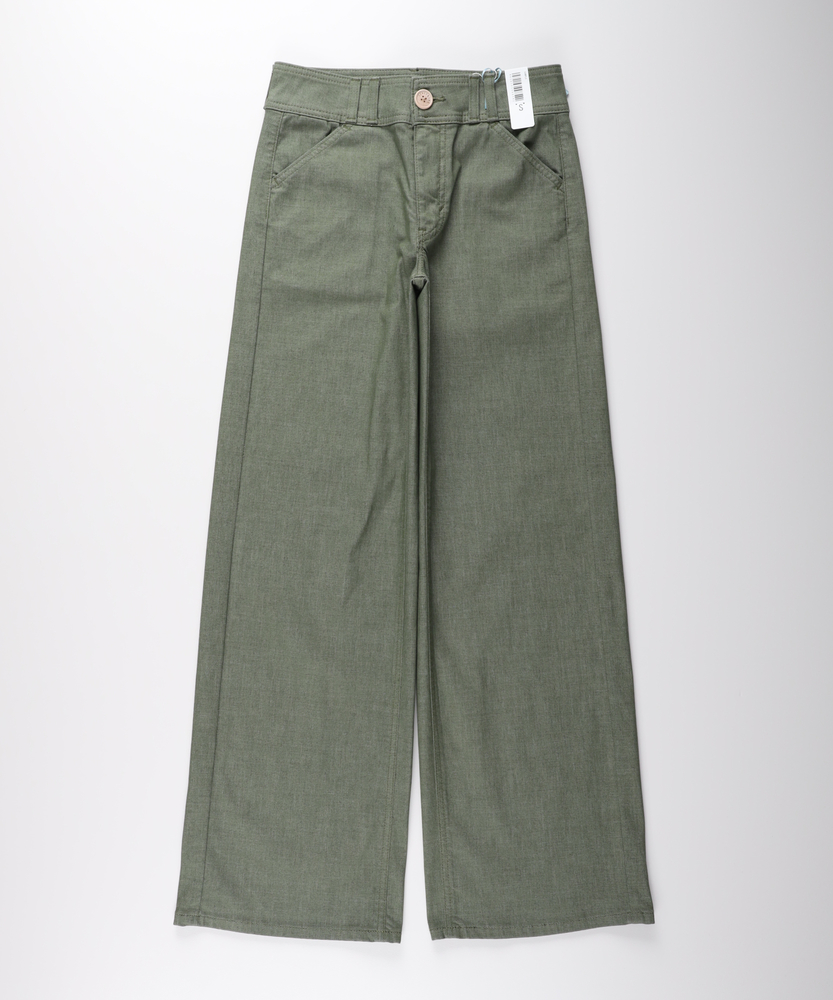 こなれ感漂うアースカラーで大人の夏支度。涼しさと体型カバーを叶える美脚セミワイド。さらりと快適。汗ばむ季節も心地よく、スマートに。■Point・真夏も快適なDOBBY素材通気性に優れたストレッチ素材。暑い日も蒸れにくく快適です。さらりとした心地よさが続きます。・汗ばむ日もベタつかない凹凸感のある生地組織を採用。肌との接着面を少なくしました。不快な張り付きを抑えサラサラに。・肉感を拾わない安心のハリ感生地の膨らみで程よいハリをキープ。気になる脚のラインをすっぽりカバー。薄手なのに安心感のあるシルエット。・スタイルアップを叶える設計腰周りをコンパクトに仕上げました。ワイドベルトでウエストをマーク。腰位置を高く見せ、脚長効果を演出。・涼しげな木製ボタンのアクセントフロントには大きめの木製ボタン。ナチュラルで軽快な印象をプラス。タックイン時のさりげないポイントに。・こなれ感を生む洗練カラー落ち着いたアースカラーを採用。カジュアルな中にも大人の品格を。日々のコーデにこなれ感をプラス。【仕様】腰周りをコンパクトにまとめた、ミッドライズのすっきりとしたセミワイドシルエットです。太めのワイドベルトデザインがウエストラインを際立たせ、腰位置を高く見せることでスタイルアップを演出。フロントのベイカー風ポケットと大きめな木製ボタンが、こなれ感漂うアースカラーにナチュラルで軽やかなアクセントを加えます。【素材】糸の間に隙間を持たせた「DOBBY組織」のストレッチ素材を採用しています。優れた通気性と凹凸のある織り目により、肌離れが良くさらっとした肌触りを実現しました。薄手で軽やかながらも、織りによる生地の膨らみが程よいハリを生み出し、気になる体の肉感を拾いにくいのが大人の女性に嬉しいポイントです。【スタイリング】広がりすぎないセミワイドと落ち着いたアースカラーの組み合わせは、いつものコーデをぐっと大人っぽく格上げします。ウエストの木製ボタンを活かしたタックインスタイルはもちろん、チュニック丈を合わせても着太りせずスマートな印象に。白Tシャツで爽やかに、黒ブラウスでシックにと、幅広いスタイリングを楽しめます。【SOMETHING】女性のためのジーンズとして1979年に誕生以来、「女の子はかならずきれいになる。」をコンセプトに国内生産を中心にしたモノづくりでどこから見ても美しい、日本の女性のためのジーンズを追求し、進化し続けています。シンプルでミニマルな、ホンモノの美しさを探求しています。