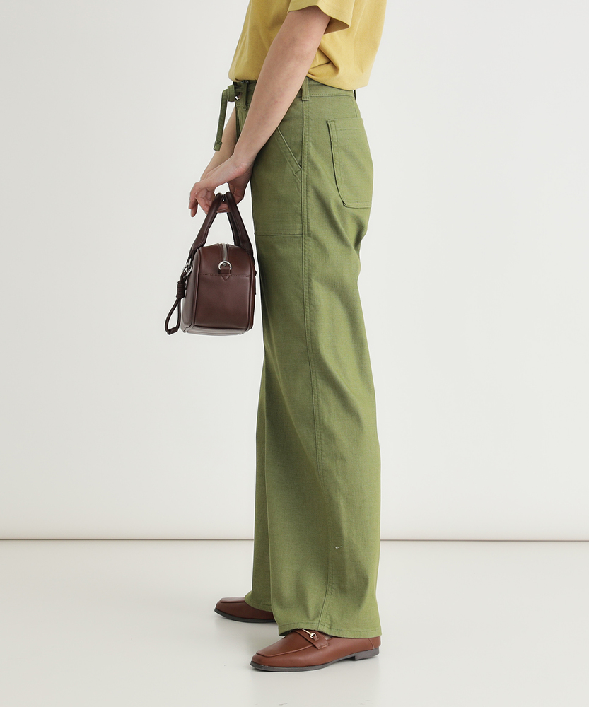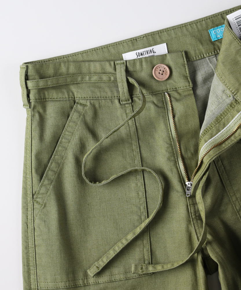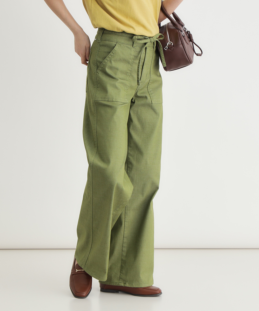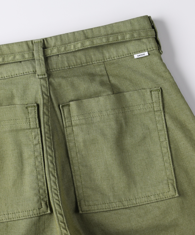 夏のお出かけに頼れる、大人のこなれ感。涼やかに纏う、美シルエットのワイドパンツ。ウエストリボンでほんのり甘さをプラス。■Point・体型を拾わない、美しいワイドシルエット。脚のラインをすっぽりと包み込みます。計算されたパターンで、すっきりとした印象に。安心感のある美しいシルエットが魅力です。・大人のカジュアルを格上げするベイカーデザイン。フロントの大きめポケットがアクセントに。気になる腰回りから視線を逸らす効果も。ワークテイストが、大人のこなれ感を演出。・ウエストリボンで女性らしさをひとさじ。共布の紐で、ウエストマークが可能です。カジュアルダウンしすぎない、上品な印象に。インスタイルの華やかなアクセントになります。・暑い季節も快適な軽やかなテクスチャ。暑い季節にぴったりの、さらりとした質感。風をはらんで涼やかに着こなせます。肌離れが良く、リラクシーな着心地です。・日常に寄り添う、ストレスフリーな設計。ゆったりとしたフォルムで、締め付けを軽減。お家時間からお出かけまで幅広く対応します。長時間穿いても疲れにくい、嬉しい設計です。・着回し力抜群のナチュラルなアースカラー。どんなトップスとも馴染む落ち着いた色合い。こなれた大人のスタイリングに重宝します。季節感を高める、洗練されたトーンです。【仕様】ワークテイストなベイカーデザインを取り入れつつ、上品に穿きこなせるよう昇華された一本です。共布のウエストリボンが愛らしいアクセントになり、トップスをインするだけで自然とスタイルアップを叶えます。ゆとりのあるワイドストレートで、リラックス感と美しさを両立させた洗練のデザインです。【素材】暑い季節にもさらりと快適に着られる、軽やかで涼しげな風合いが魅力です。肌にまとわりつきにくいテクスチャで、汗ばむ時期でもストレスフリーな穿き心地をキープします。ナチュラルで奥行きのある表情を持った生地感が、カジュアルな着こなしに大人の余裕と上品さをプラスしてくれます。【スタイリング】シンプルなTシャツを合わせるだけでも、ウエストリボンがアクセントになりサマになります。ブラウスやサマーニットと合わせれば、程よくキレイめな大人のカジュアルスタイルが完成します。足元はフラットサンダルで抜け感を出すのはもちろん、スニーカーでアクティブにまとめるのもおすすめ。幅広く活躍します。【SOMETHING】女性のためのジーンズとして1979年に誕生以来、「女の子はかならずきれいになる。」をコンセプトに国内生産を中心にしたモノづくりでどこから見ても美しい、日本の女性のためのジーンズを追求し、進化し続けています。シンプルでミニマルな、ホンモノの美しさを探求しています。