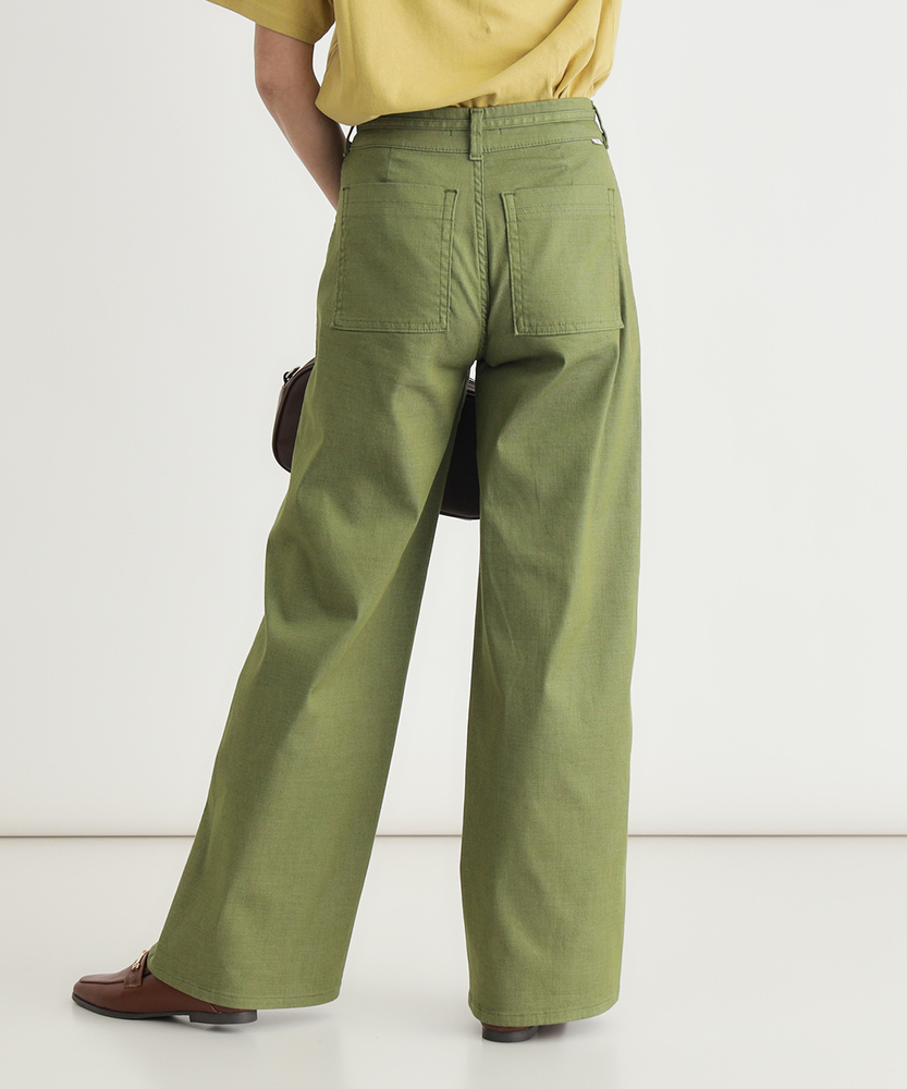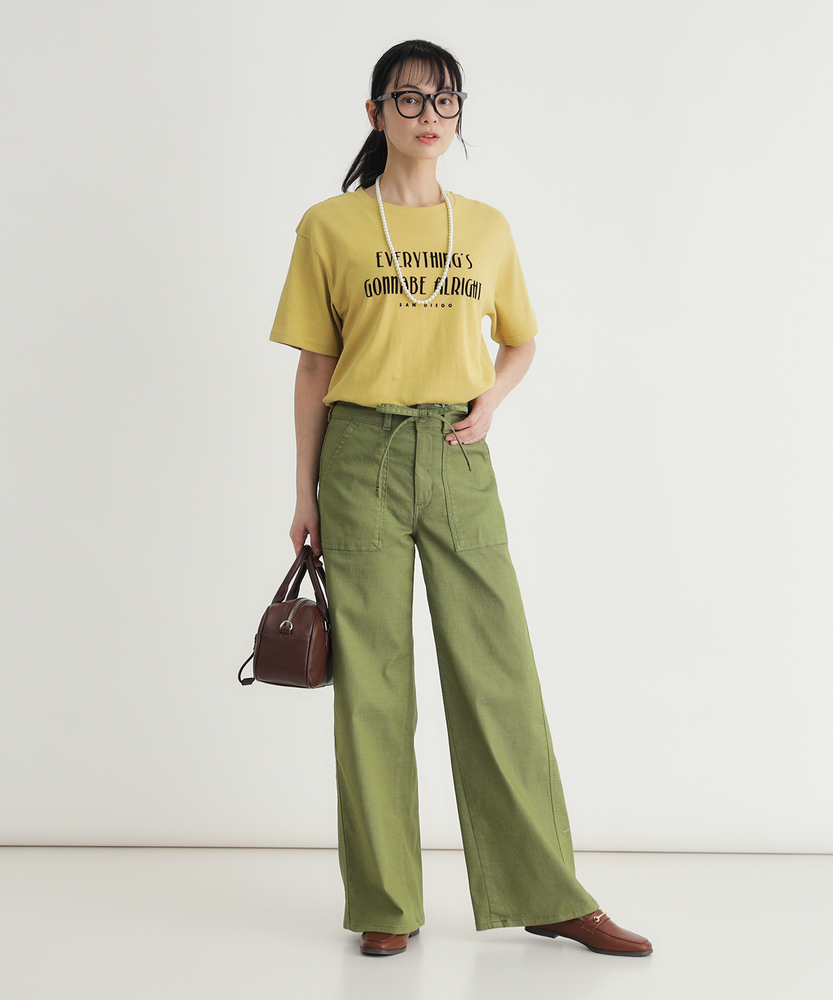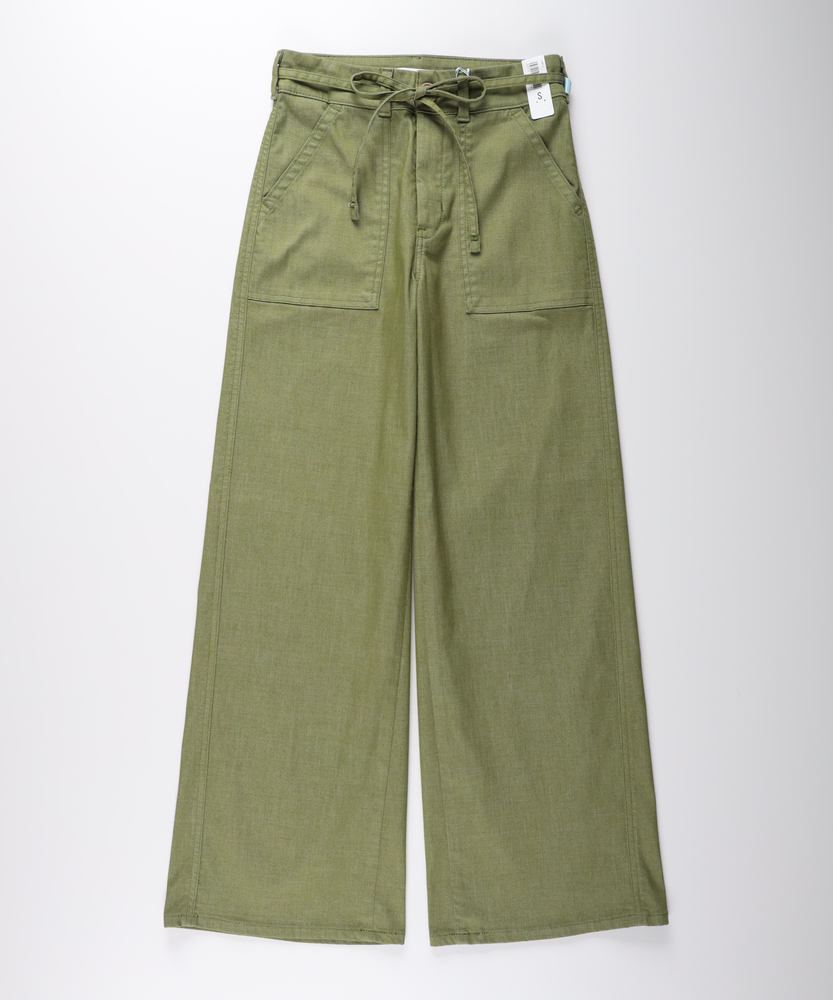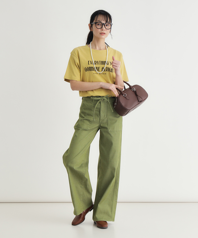 夏のお出かけに頼れる、大人のこなれ感。涼やかに纏う、美シルエットのワイドパンツ。ウエストリボンでほんのり甘さをプラス。■Point・体型を拾わない、美しいワイドシルエット。脚のラインをすっぽりと包み込みます。計算されたパターンで、すっきりとした印象に。安心感のある美しいシルエットが魅力です。・大人のカジュアルを格上げするベイカーデザイン。フロントの大きめポケットがアクセントに。気になる腰回りから視線を逸らす効果も。ワークテイストが、大人のこなれ感を演出。・ウエストリボンで女性らしさをひとさじ。共布の紐で、ウエストマークが可能です。カジュアルダウンしすぎない、上品な印象に。インスタイルの華やかなアクセントになります。・暑い季節も快適な軽やかなテクスチャ。暑い季節にぴったりの、さらりとした質感。風をはらんで涼やかに着こなせます。肌離れが良く、リラクシーな着心地です。・日常に寄り添う、ストレスフリーな設計。ゆったりとしたフォルムで、締め付けを軽減。お家時間からお出かけまで幅広く対応します。長時間穿いても疲れにくい、嬉しい設計です。・着回し力抜群のナチュラルなアースカラー。どんなトップスとも馴染む落ち着いた色合い。こなれた大人のスタイリングに重宝します。季節感を高める、洗練されたトーンです。【仕様】ワークテイストなベイカーデザインを取り入れつつ、上品に穿きこなせるよう昇華された一本です。共布のウエストリボンが愛らしいアクセントになり、トップスをインするだけで自然とスタイルアップを叶えます。ゆとりのあるワイドストレートで、リラックス感と美しさを両立させた洗練のデザインです。【素材】暑い季節にもさらりと快適に着られる、軽やかで涼しげな風合いが魅力です。肌にまとわりつきにくいテクスチャで、汗ばむ時期でもストレスフリーな穿き心地をキープします。ナチュラルで奥行きのある表情を持った生地感が、カジュアルな着こなしに大人の余裕と上品さをプラスしてくれます。【スタイリング】シンプルなTシャツを合わせるだけでも、ウエストリボンがアクセントになりサマになります。ブラウスやサマーニットと合わせれば、程よくキレイめな大人のカジュアルスタイルが完成します。足元はフラットサンダルで抜け感を出すのはもちろん、スニーカーでアクティブにまとめるのもおすすめ。幅広く活躍します。【SOMETHING】女性のためのジーンズとして1979年に誕生以来、「女の子はかならずきれいになる。」をコンセプトに国内生産を中心にしたモノづくりでどこから見ても美しい、日本の女性のためのジーンズを追求し、進化し続けています。シンプルでミニマルな、ホンモノの美しさを探求しています。