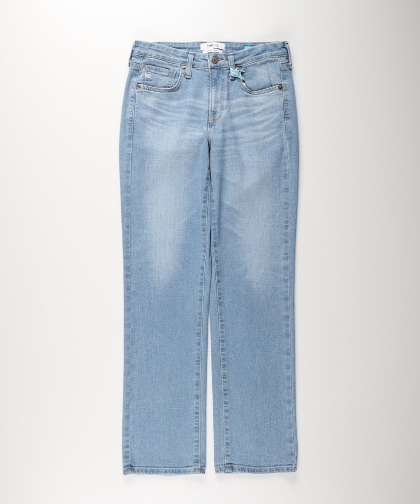 暑い日も涼しく、美しく。夏の毎日に寄り添う清涼デニム。脚のラインを拾わない、洗練された大人のストレートシルエット。穿くたびに実感する心地よさ。軽やかでストレスフリーな日常へ。■Point・夏を快適にする清涼感手に取った瞬間に涼しさを実感。暑い季節も快適に過ごせます。一日中爽やかなはき心地をキープ。・汗をかいてもムレにくい独自の糸が汗を素早く吸収・拡散。衣服内に熱がこもるのを防ぎます。ベタつかずサラリとした肌触り。・脚を美しく見せる直線美膝からまっすぐに落ちるライン。太すぎず細すぎない絶妙なバランス。気になる脚のラインを綺麗にカバー。・ゆとりを持たせた腰周り腰周りに程よいゆとりをプラス。座った時も窮屈感を感じさせません。大人の女性に嬉しい安心設計です。・軽やかで柔らかな風合い重たさを感じさせない軽い仕上がり。優しく柔らかな生地感が魅力です。動くたびにストレスフリーな着用感。・着回し力の高い万能さフルレングスでスタイルアップ効果。どんな足元にもバランスよくマッチ。カジュアルからキレイめまで活躍。【仕様】体型を美しく見せることにこだわり抜いた、洗練されたストレートシルエットが魅力です。腰周りには適度なゆとりを持たせつつ、膝下から裾に向かってまっすぐに落ちるラインが、脚をすっきりと長く演出します。春夏の日差しに映える爽やかなカラーリングと自然な色落ち感が、着こなしに抜け感を与えます。【素材】ヨコ糸にマイクロモダールエアーを使用したオリジナルの『COOL DENIM』を採用。手に取った瞬間に感じる清涼感と、ふんわりと軽やかな風合いが特徴です。汗を素早く吸収し拡散させる機能により、熱がこもりにくくムレを軽減。暑さの厳しい季節でも、ベタつかずサラリとした快適な肌触りが一日中持続します。【スタイリング】Tシャツを合わせた王道カジュアルから、ブラウスを合わせたきれいめスタイルまで幅広く対応します。春先は透け感のある軽やかなトップスと、真夏はノースリーブやキャミソールで少し肌を見せると、旬な抜け感のあるコーディネートが完成。スニーカーやサンダルなど、合わせる靴を選ばない頼れる一本です。【SOMETHING】女性のためのジーンズとして1979年に誕生以来、「女の子はかならずきれいになる。」をコンセプトに国内生産を中心にしたモノづくりでどこから見ても美しい、日本の女性のためのジーンズを追求し、進化し続けています。シンプルでミニマルな、ホンモノの美しさを探求しています。