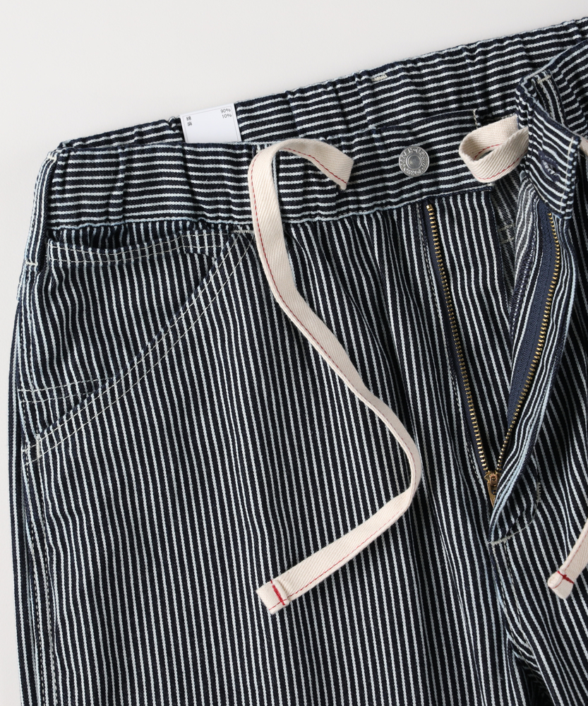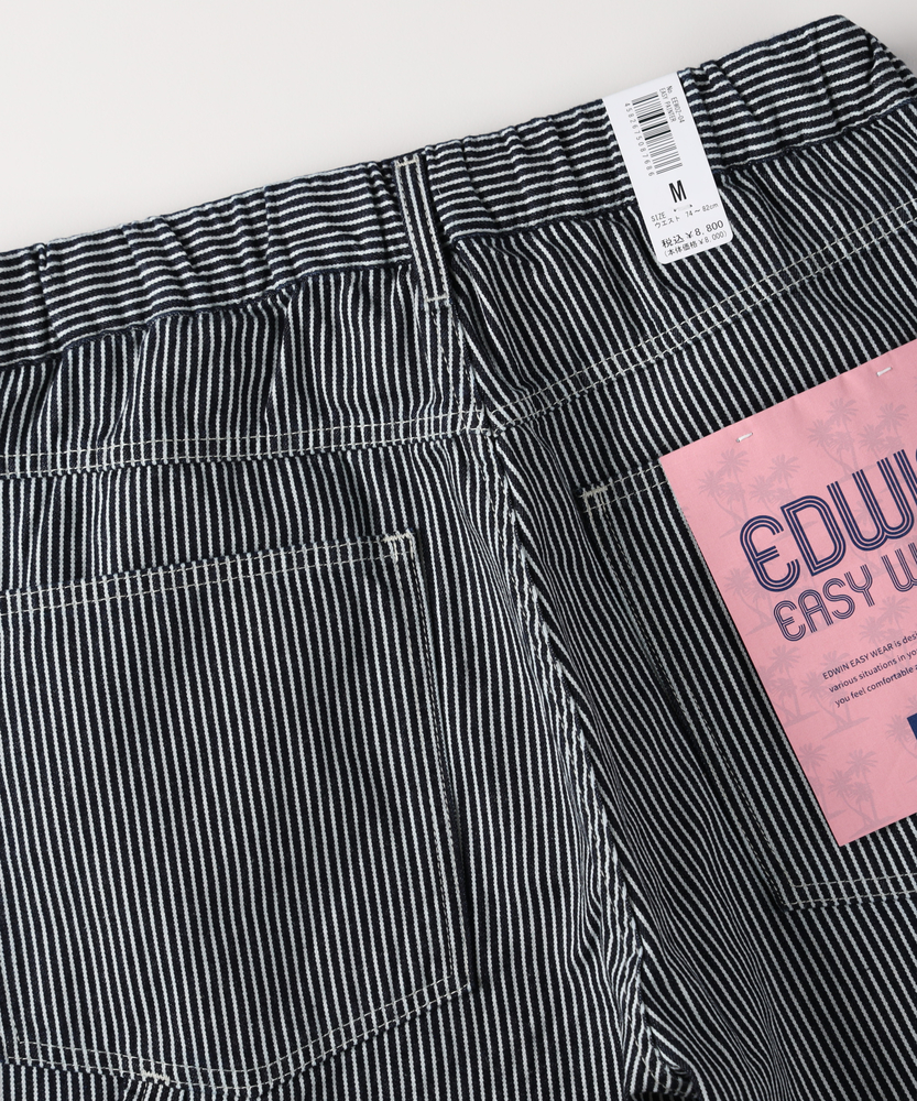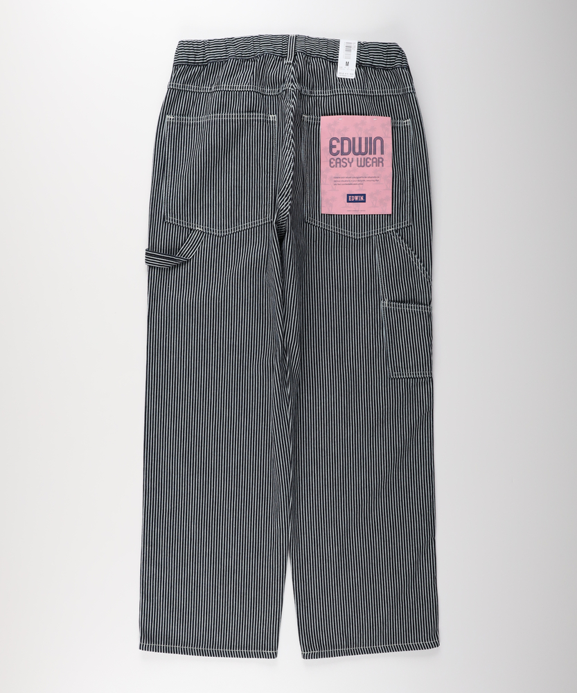 大人の休日を格上げする本格ワークパンツ。伝統のディテールと快適なイージー仕様の融合。爽やかなストライプが醸し出すクリーンな余裕。■Point・締め付けのないウエストゴム仕様ベルトレスでサッと穿ける手軽さ。長時間の着用もストレスフリーに。休日のリラックスタイムに最適です。・本格的なペインターディテールツールポケットやハンマーループを配置。ワークウェアならではの機能美を搭載。男心をくすぐる実用的なデザインです。・爽やかなヒッコリーストライプ視覚的な縦ラインですっきりとした印象に。シンプルなトップスのアクセントとして活躍。清潔感漂う大人のワークスタイルを演出。・リラクシーなワイドシルエット脚のラインを拾わないゆったりとした設計。トレンド感のあるモダンなバランス感。動きやすく快適な足さばきを実現します。・調整可能なフロントドローコード好みのフィット感に簡単に調整可能。紐を見せて着こなしのアクセントにも。機能性とデザイン性を両立しました。・日本が誇るブランドの確かな品質長年培われたノウハウを日常着に凝縮。デイリーユースに適したタフな仕上がり。長く愛用したくなる頼れる一本です。【仕様】ゆったりとしたワイドストレートシルエットが特徴的なワークパンツ。ハンマーループやツールポケットといった伝統的なディテールを踏襲しつつ、ウエストをゴムと紐のイージー仕様にアップデートしました。白のステッチがアクセントとなり、無骨すぎない洗練されたデザインに仕上がっています。【素材】ワークウェア特有のタフな表情を持ちながらも、デイリーユースしやすい肌馴染みの良い風合いが魅力です。爽やかなストライプ柄は、視覚的な縦のラインを強調し、スタイリングをすっきりと見せる効果も。シーズンを問わず活躍し、日常に寄り添う快適な穿き心地を実現しています。【スタイリング】無地のカットソーやスウェットと合わせるだけで、柄が引き立つクリーンなカジュアルスタイルが完成します。足元はスニーカーからレザーシューズまで幅広くマッチ。休日のリラックスしたお出かけからアクティブなシーンまで、気負わない大人のこなれ感を演出してくれる頼れるアイテムです。【EDWIN】日本が誇る国産ジーンズブランド。1947年より米軍払い下げ衣料の卸を行っていた常見米八商店は、日本人の体型に合ったジーンズを自分たちの手で作るべく1961年に「EDWIN」のレーベルを冠した、初の国産ジーンズを作った。国産の品質と常に新しいものを生み出し続ける探究心は、海外の愛好家からも高い評価を得ています。