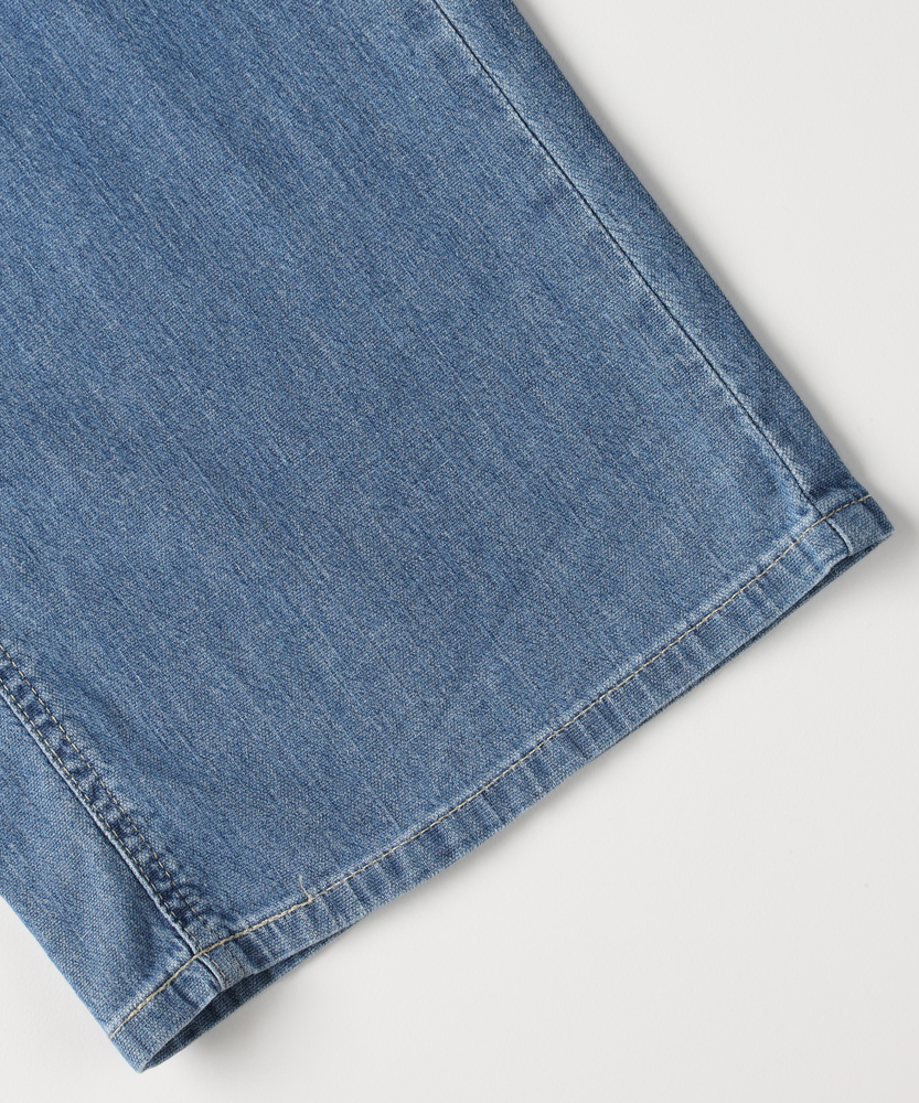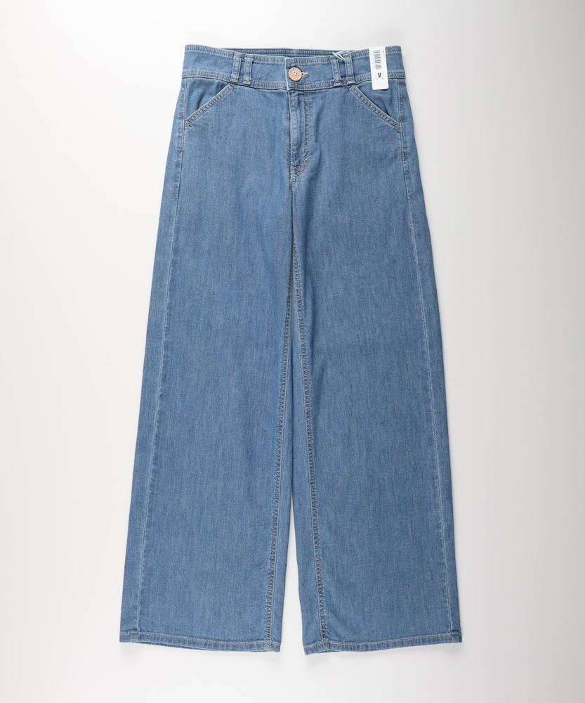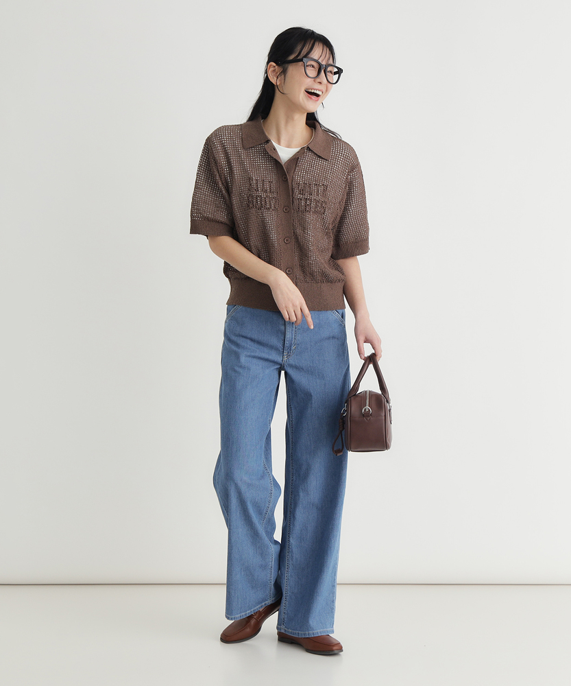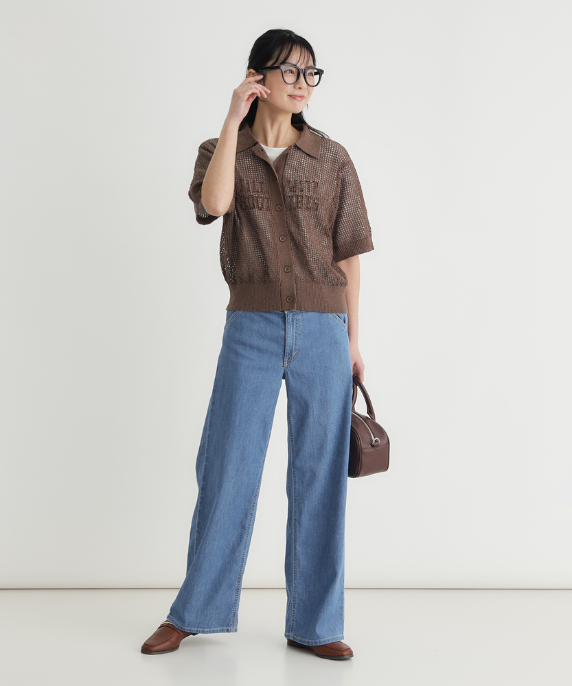 夏を涼しく乗り切る、さらりと快適なはき心地。腰周りすっきり、大人のための美脚セミワイド。肉感を拾わず、美しいシルエットをキープする一本。■Point・真夏も快適な「DOBBY素材」通気性に優れたストレッチ素材。暑い日も蒸れにくく快適です。さらりとした肌触りが続きます。・肌離れが良く、べたつかない凹凸感のある生地組織を採用。肌との接着面を少なくしました。汗ばむ季節も不快感ゼロへ。・薄手なのに肉感を拾わない生地の膨らみで程よいハリ感を。脚のラインをすっぽりカバー。安心感のある美しいシルエット。・スタイルアップを叶える設計腰回りをコンパクトに仕上げました。ワイドベルトでウエストをマーク。腰位置を高く見せ、脚長効果を演出。・涼しげな木製ボタンのアクセントフロントには大きめの木製ボタン。ナチュラルで軽快な印象をプラス。タックイン時のさりげないポイントに。・どんなトップスとも好バランス太すぎない絶妙なセミワイド。チュニック丈と合わせてもすっきり。着太りせずスマートに決まります。【仕様】腰周りをコンパクトにまとめた、ミッドライズのすっきりとしたセミワイドシルエットです。太めのワイドベルトデザインがウエストラインを際立たせ、腰位置を高く見せることでスタイルアップを演出します。フロントの大きめな木製ボタンが、夏の装いにナチュラルで軽やかなアクセントを加えます。【素材】糸の間に隙間を持たせた「DOBBY組織」のストレッチ素材を採用しています。優れた通気性と凹凸のある織り目により、肌離れが良くさらっとした肌触りを実現しました。薄手で軽やかながらも、織りによる生地の膨らみが程よいハリを生み出し、気になる体の肉感を拾いにくいのが大人の女性に嬉しいポイントです。【スタイリング】広がりすぎないセミワイドのラインは、カジュアルなTシャツからきれいめなブラウスまで幅広くマッチします。ウエストデザインと木製ボタンを活かしたタックインスタイルはもちろん、チュニック丈のトップスを合わせても着太りせず、スマートなバランスに。清涼感のあるカラーで夏のコーディネートを華やかに彩ります。【SOMETHING】女性のためのジーンズとして1979年に誕生以来、「女の子はかならずきれいになる。」をコンセプトに国内生産を中心にしたモノづくりでどこから見ても美しい、日本の女性のためのジーンズを追求し、進化し続けています。シンプルでミニマルな、ホンモノの美しさを探求しています。