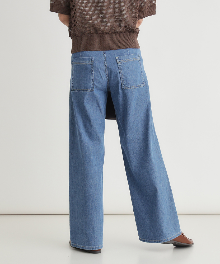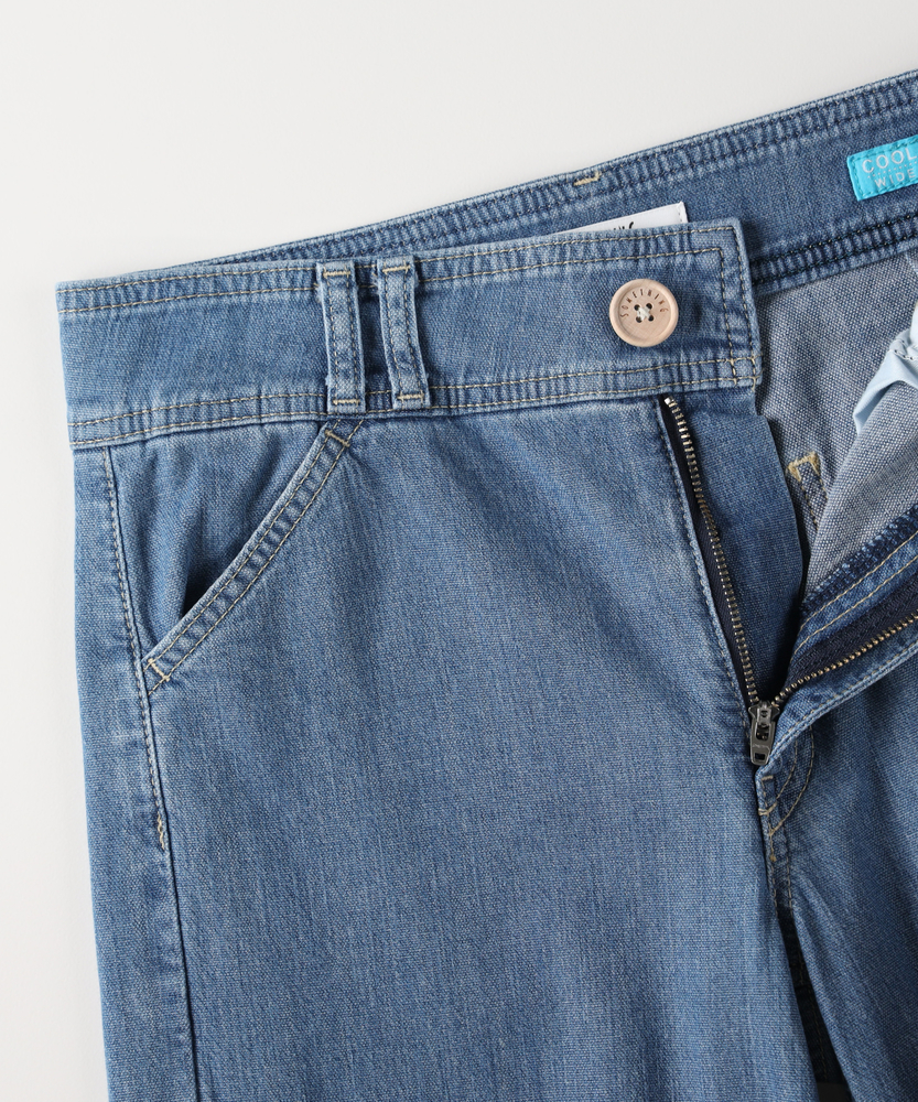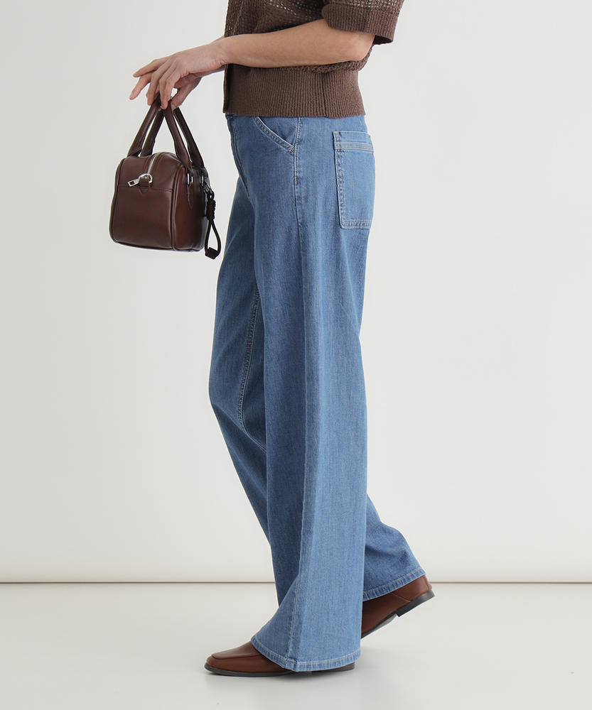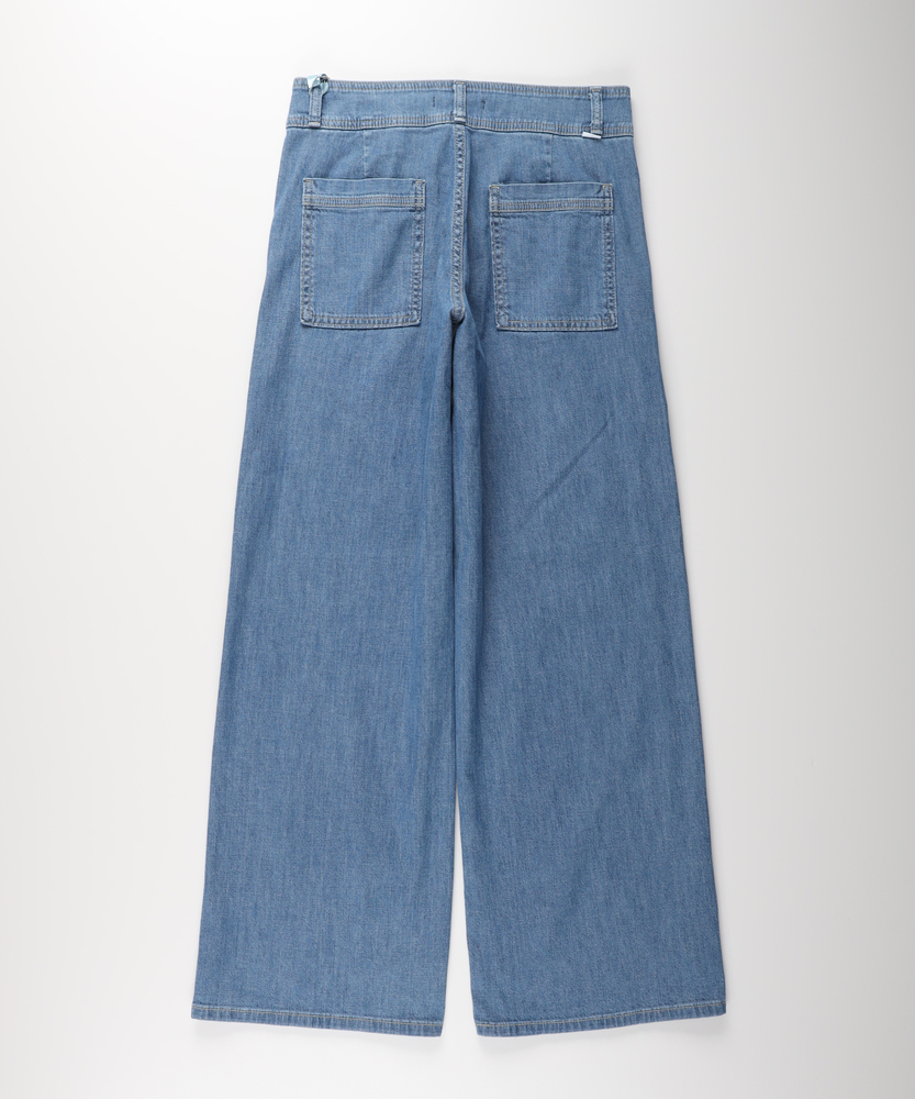 夏を涼しく乗り切る、さらりと快適なはき心地。腰周りすっきり、大人のための美脚セミワイド。肉感を拾わず、美しいシルエットをキープする一本。■Point・真夏も快適な「DOBBY素材」通気性に優れたストレッチ素材。暑い日も蒸れにくく快適です。さらりとした肌触りが続きます。・肌離れが良く、べたつかない凹凸感のある生地組織を採用。肌との接着面を少なくしました。汗ばむ季節も不快感ゼロへ。・薄手なのに肉感を拾わない生地の膨らみで程よいハリ感を。脚のラインをすっぽりカバー。安心感のある美しいシルエット。・スタイルアップを叶える設計腰回りをコンパクトに仕上げました。ワイドベルトでウエストをマーク。腰位置を高く見せ、脚長効果を演出。・涼しげな木製ボタンのアクセントフロントには大きめの木製ボタン。ナチュラルで軽快な印象をプラス。タックイン時のさりげないポイントに。・どんなトップスとも好バランス太すぎない絶妙なセミワイド。チュニック丈と合わせてもすっきり。着太りせずスマートに決まります。【仕様】腰周りをコンパクトにまとめた、ミッドライズのすっきりとしたセミワイドシルエットです。太めのワイドベルトデザインがウエストラインを際立たせ、腰位置を高く見せることでスタイルアップを演出します。フロントの大きめな木製ボタンが、夏の装いにナチュラルで軽やかなアクセントを加えます。【素材】糸の間に隙間を持たせた「DOBBY組織」のストレッチ素材を採用しています。優れた通気性と凹凸のある織り目により、肌離れが良くさらっとした肌触りを実現しました。薄手で軽やかながらも、織りによる生地の膨らみが程よいハリを生み出し、気になる体の肉感を拾いにくいのが大人の女性に嬉しいポイントです。【スタイリング】広がりすぎないセミワイドのラインは、カジュアルなTシャツからきれいめなブラウスまで幅広くマッチします。ウエストデザインと木製ボタンを活かしたタックインスタイルはもちろん、チュニック丈のトップスを合わせても着太りせず、スマートなバランスに。清涼感のあるカラーで夏のコーディネートを華やかに彩ります。【SOMETHING】女性のためのジーンズとして1979年に誕生以来、「女の子はかならずきれいになる。」をコンセプトに国内生産を中心にしたモノづくりでどこから見ても美しい、日本の女性のためのジーンズを追求し、進化し続けています。シンプルでミニマルな、ホンモノの美しさを探求しています。