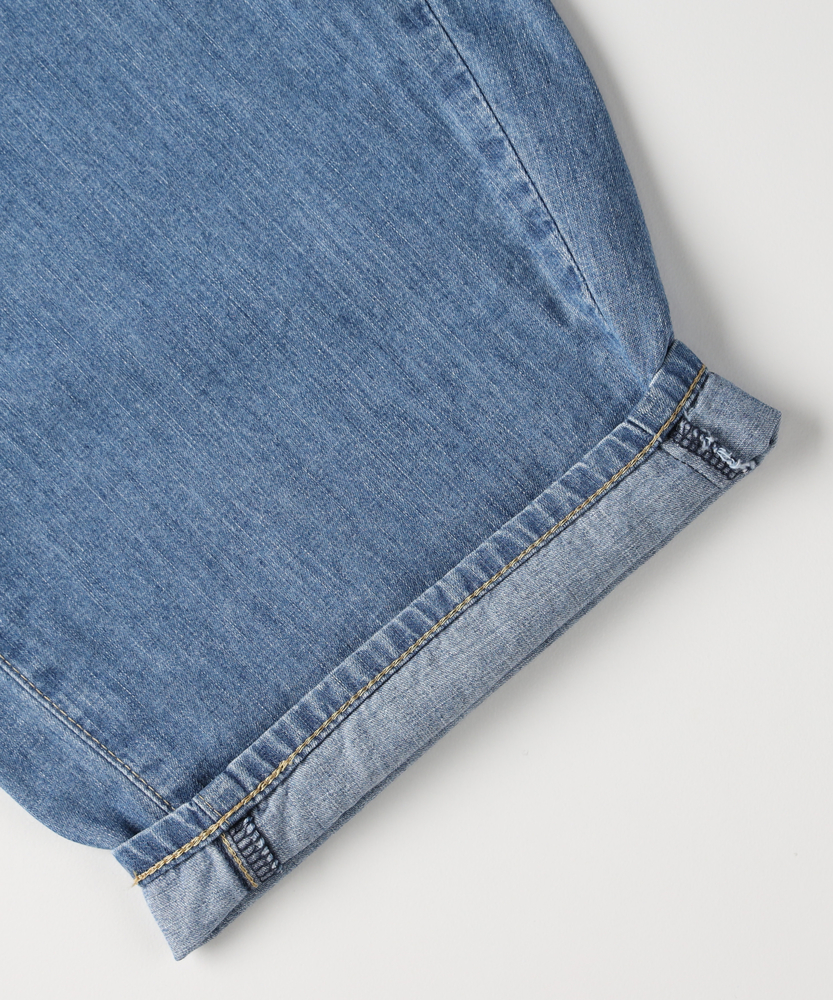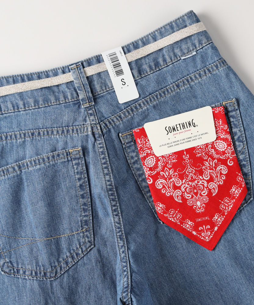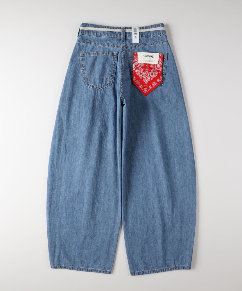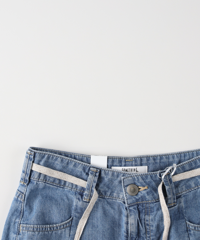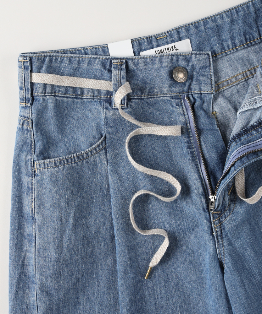 穿くだけで旬のシルエットが完成。気になるラインを包み込む、夏の主役デニム。楽ちんなのに美しい、大人の抜け感スタイル。■Point・体型を美しくカバーするカーブ設計ゆとりを持たせた丸みのあるライン。脚のシルエットを拾わずすっきり見せ。下半身のお悩みを自然にカバーします。・フロントタックで立体感をプラス腰回りにゆとりを生むタック仕様。のっぺりせず、表情豊かなシルエットに。トップスインも綺麗に決まります。・ウエスト紐でリラクシーな穿き心地締め付け感を軽減するドローコード。お好みのフィット感に調整可能です。休日のリラックスタイムにも最適。・女性のための美しいパターンメイクカジュアルになりすぎない絶妙なバランス。ルーズな中にも計算された美しさ。大人の上品さをキープする仕上がりです。・夏に嬉しい軽やかな穿き心地見た目以上に柔らかく軽快な風合い。汗ばむ季節も肌にまとわりつきにくい。暑い日のお出かけも快適に過ごせます。・爽やかさを引き立てるウォッシュ加工ヴィンテージライクな自然な色落ち感。軽快で涼しげな印象を与えます。シンプルなTシャツとも相性抜群です。【仕様】丸みを帯びたカーブシルエットが目を惹く、トレンド感溢れる一本。フロントのタックが立体感を生み出し、気になる下半身のラインを優しくカバーします。ウエストのドローコードがリラクシーなアクセントになり、気負わない大人のカジュアルスタイルを演出。ゆったりしつつも野暮ったく見えない、洗練されたフォルムです。【素材】夏場でも快適に穿ける、軽やかで肌当たりの良い風合いが魅力です。見た目は本格的なデニムの表情を持ちながらも、ゴワつきを抑えた柔らかな穿き心地を実現。動くたびに自然なドレープが生まれ、女性らしいニュアンスを引き立てます。明るいカラーが清涼感を与え、シーズンムードを盛り上げます。【スタイリング】ボリュームのあるボトムスなので、コンパクトなトップスと合わせると全体のバランスが美しく整います。ロゴTシャツやノースリーブをタックインすれば、メリハリの効いた旬のスタイリングに。足元はフラットサンダルやスニーカーでラフにまとめると、大人のエフォートレスな休日コーデが完成します。【SOMETHING】女性のためのジーンズとして1979年に誕生以来、「女の子はかならずきれいになる。」をコンセプトに国内生産を中心にしたモノづくりでどこから見ても美しい、日本の女性のためのジーンズを追求し、進化し続けています。シンプルでミニマルな、ホンモノの美しさを探求しています。