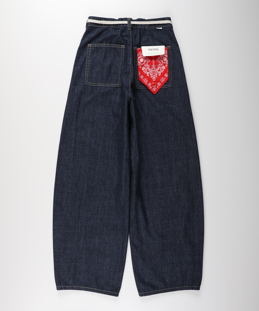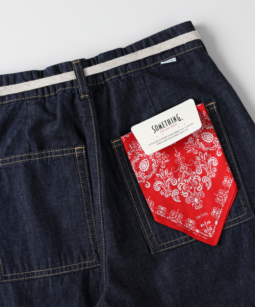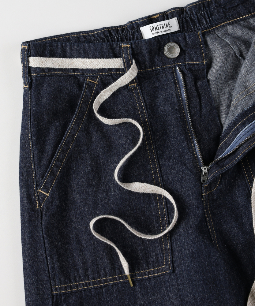 夏のデニムは「涼しく、美しく」。気になるラインを包み込むカーブシルエット。穿くだけで決まる、大人のリラックススタイル。■Point・体型を拾わないカーブシルエットゆったりとしたワイドな太もも周り。裾にかけて絞るラインですっきり見え。足のラインを美しくカバーします。・腰回りを隠すベイカーポケット大きめのフロントポケットがアクセント。気になる腰回りや太ももを視覚的にカバー。実用性とスタイルアップを両立します。・夏でも快適なライトオンスデニム6.5ozの軽やかなデニム生地を使用。汗ばむ季節もさらりとした肌触り。一日中ベタつかず快適に過ごせます。・ストレスフリーなウエストゴム腰裏に施されたゴムが優しくフィット。締め付け感のない楽な穿き心地。長時間の着用でもリラックスできます。・アクセントになるウエストリボンウエストのドローストリングがポイント。トップスインした際のおしゃれなアクセントに。お好みのフィット感に調整も可能です。・大人の洗練されたインディゴカラー深みのある落ち着いたデニムの色合い。カジュアルダウンしすぎず上品な印象に。どんなトップスとも相性抜群です。【仕様】丸みを帯びたカーブシルエットが特徴的なワイドパンツ。ゆとりがありながらも裾に向かって細くなる設計で、野暮ったさを感じさせない洗練されたバランスです。フロントの大きめなベイカーポケットが、気になる腰周りを自然にカモフラージュ。ウエストの紐ディテールが着こなしのさりげないアクセントになります。【素材】6.5オンスのライトウエイトな綿100%デニムを採用。糸のムラ感が引き立つ表情豊かな風合いが、シンプルながらも奥行きを感じさせます。肌に触れてもベタつきにくい、さらさらとした爽やかな質感が魅力。汗ばむ季節でも重たくならず、一日中ストレスフリーで快適な穿き心地をキープしてくれます。【スタイリング】コンパクトなTシャツやノースリーブをタックインすれば、ウエストの紐が際立ちメリハリのあるスタイルに。リネンシャツやシアー感のあるブラウスをふわりと合わせれば、大人の抜け感漂うリラクシーなコーディネートが完成します。足元は華奢なサンダルやスニーカーで軽快にまとめるのがおすすめです。【SOMETHING】女性のためのジーンズとして1979年に誕生以来、「女の子はかならずきれいになる。」をコンセプトに国内生産を中心にしたモノづくりでどこから見ても美しい、日本の女性のためのジーンズを追求し、進化し続けています。シンプルでミニマルな、ホンモノの美しさを探求しています。
