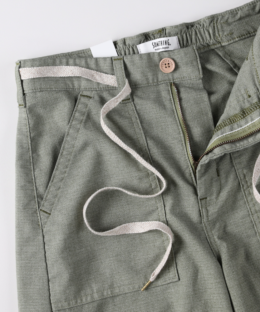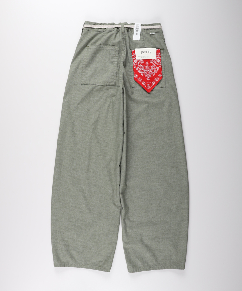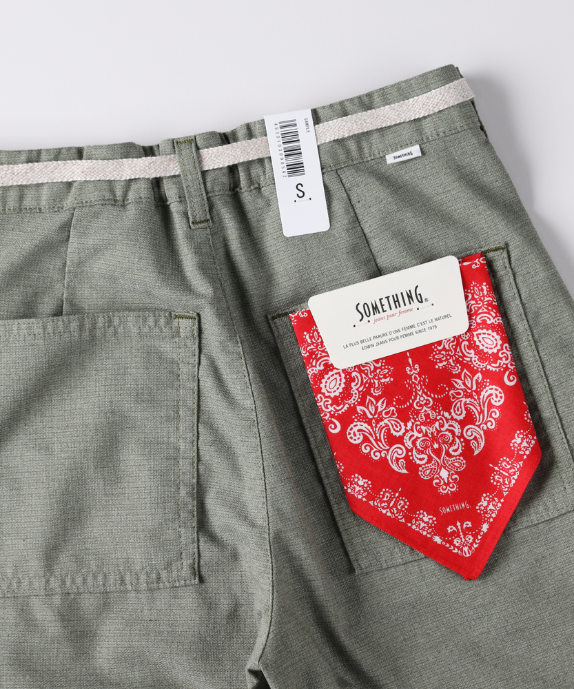 夏の不快感をゼロにする、驚きの軽さとドライな肌触り。気になるラインを隠す、洗練のカーブシルエット。涼しさと美しさを両立する、大人のサマーパンツ。■Point・体型を美しく見せるカーブシルエットゆとりあるワイドなライン。裾にかけてすっきり絞る設計。脚の形を拾わず綺麗にカバーします。・腰回りをカバーするベイカーポケット大きめのフロントポケット。気になる腰の張りをカモフラージュ。実用性も兼ね備えたデザインです。・驚くほど軽いメッシュ素材特殊な織構造を採用。風が抜ける涼しい穿き心地。汗ばむ季節もノンストレスです。・ベタつかないドライな肌触り強撚糸を使用したさらりとした質感。肌離れが良く一日中快適。夏の暑さも爽やかに乗り切れます。・締め付けのないウエストゴム仕様腰裏に施されたゴムが優しくフィット。窮屈感のない楽ちんな穿き心地。アクティブな日もリラックスできます。・清涼感漂うシャンブレー調の表情奥行きのある爽やかな色合い。カジュアルすぎず大人っぽい印象。夏の装いに軽快さをプラスします。【仕様】女性の美しさを探求するブランドならではの、計算されたカーブシルエットが目を惹く一本。太もも周りはゆったりとさせつつ、裾に向かって細くなるパターンが野暮ったさを払拭します。フロントのベイカーポケットが腰回りを視覚的にカバー。ウエストのドロスト紐が、リラクシーな中にもさりげないアクセントを添えてくれます。【素材】とにかく軽さにこだわった、特殊な織構造のメッシュ素材を使用しています。タテヨコにTC混紡糸を用いることで、爽やかなシャンブレー調のルックスを実現。さらに強撚糸を使うことで、汗をかいても肌に張り付きにくいドライタッチな風合いに仕上げました。見た目も穿き心地も涼しい、夏に最適なマテリアルです。【スタイリング】清涼感のあるニュアンスカラーは、白いカットソーやリネンのシャツと合わせるだけで爽やかなサマースタイルが完成します。コンパクトなトップスをタックインしてウエストの紐をポイントにすれば、スタイルアップ効果も抜群。足元はスニーカーでカジュアルに、華奢なサンダルで抜け感を出すのもおすすめです。【SOMETHING】女性のためのジーンズとして1979年に誕生以来、「女の子はかならずきれいになる。」をコンセプトに国内生産を中心にしたモノづくりでどこから見ても美しい、日本の女性のためのジーンズを追求し、進化し続けています。シンプルでミニマルな、ホンモノの美しさを探求しています。