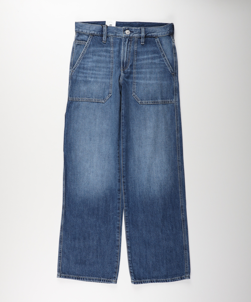 【仕様】カーペンダールーズジーンズは、ジッパーとボタンで開閉するスタイルのルーズフィットのローライズジーンズ。リラックスしたシルエットが特徴で、カジュアルなスタイルにぴったりです。大きめのポケットがデザインのアクセントとなり、機能性も兼ね備えています。【素材】 100%再生型コットンを使用し、環境に配慮した素材感が魅力です。しっかりとした生地感で、耐久性と快適さを兼ね備えています。デニム特有の風合いが、着るほどに愛着を感じさせるアイテムに仕上がっています。 【スタイリング】 シンプルなTシャツやスウェットと合わせて、カジュアルなスタイルを楽しむのがオススメ。スニーカーやブーツと組み合わせることで、リラックスした雰囲気を演出。デイリーユースに最適な一着として、クローゼットに加えたいアイテムです。