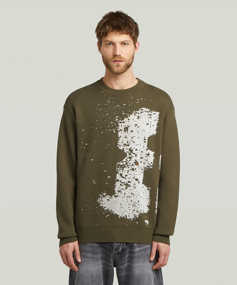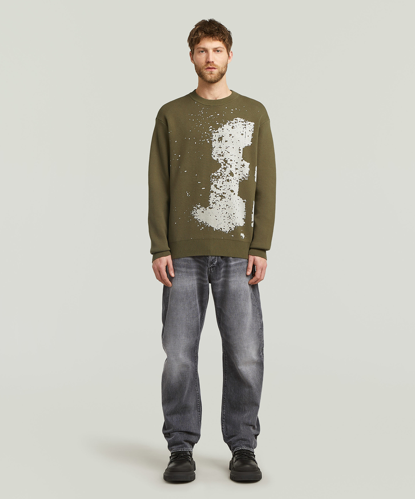 【仕様】リラックスフィットのプルオーバーは、独特なグラフィックが目を引くスタイリッシュな一着。大胆なデザインが個性を際立たせ、カジュアルなスタイルにアクセントを加えます。シンプルなボトムスとも相性抜群です。【素材】 リブニットの風合いが特徴で、柔らかく快適な着心地を実現。通気性が良く、季節を問わず着用できるため、デイリーユースに最適です。耐久性もあり、長く愛用できるアイテムです。 【スタイリング】 デニムやカーゴパンツと合わせて、リラックスしたカジュアルスタイルを楽しむのがオススメ。シンプルなTシャツをインナーに重ねることで、レイヤードスタイルを演出できます。アクセサリーやシューズで自分らしさをプラスして、個性的なコーディネートを完成させましょう。