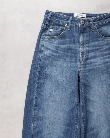リンジラインをアクセントに効かせることで縦のラインを強調し、ワイドシルエットでもすっ きり見え。フロントヨークデザインは、ハイウエストでも腰周りをコンパクトに、ローライズ風 に見える視覚効果を狙ったデザイン。