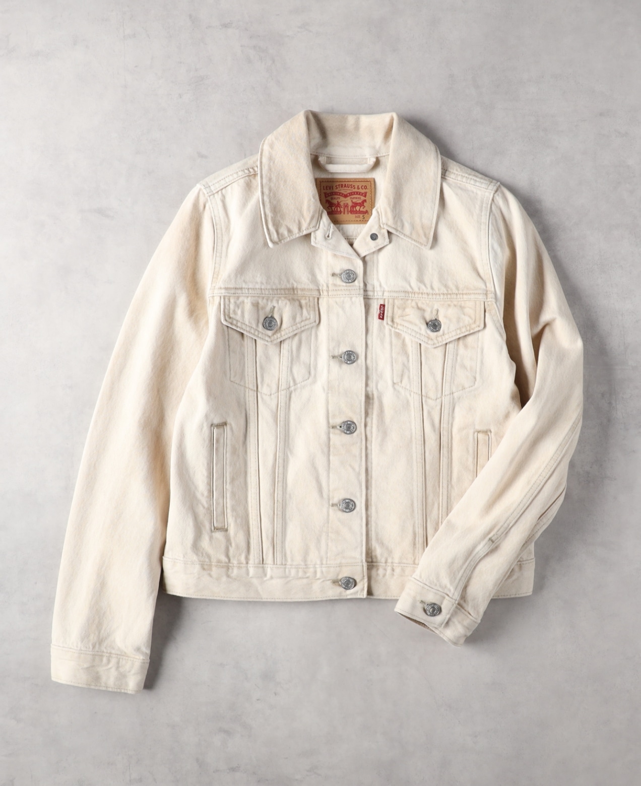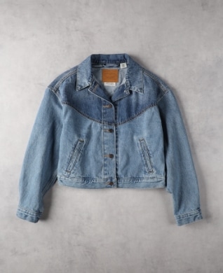 ●ウエスタン切り替えのディテールが印象的なトラッカージャケットは、身幅ゆったりで丈はやや短め。