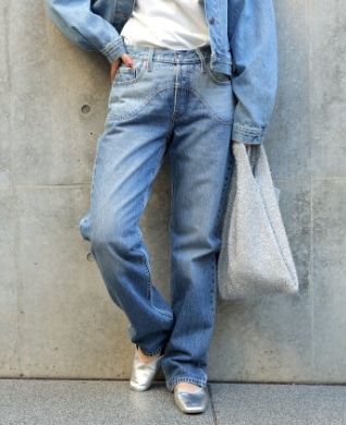 ●ポケット下の切り替えが目を引く501®は、緩めの90sシルエットです。