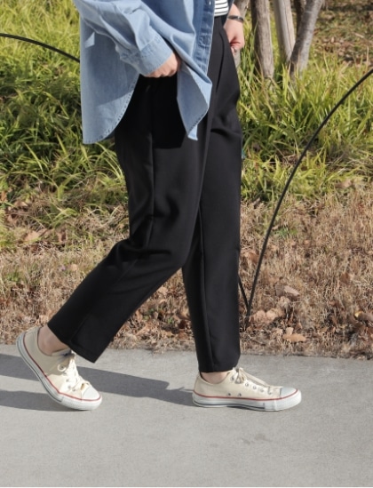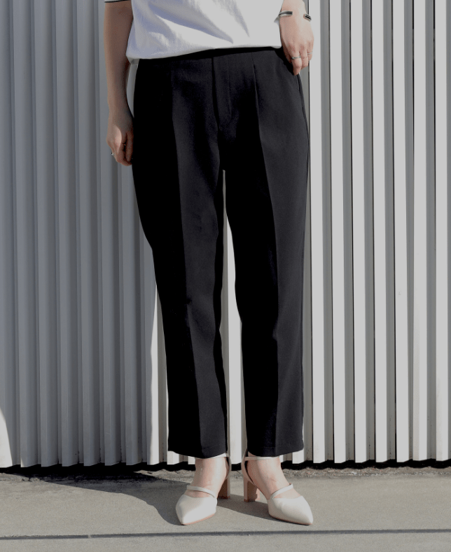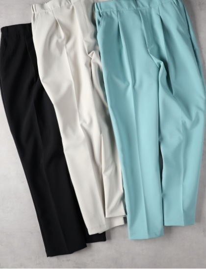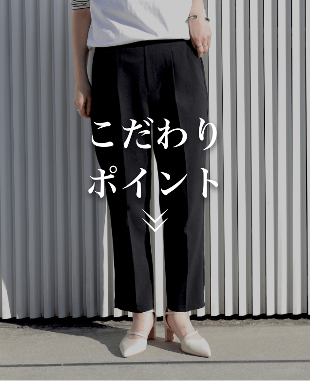 キレイなセンタープレスがすっきりとした美脚ラインを実現。ウエスト周りのフィット感を高めヒップ下から程よくゆとりを持たせることで、快適さとスタイルアップを両立。縦のラインを意識した設計が、洗練された印象を引き立てます。